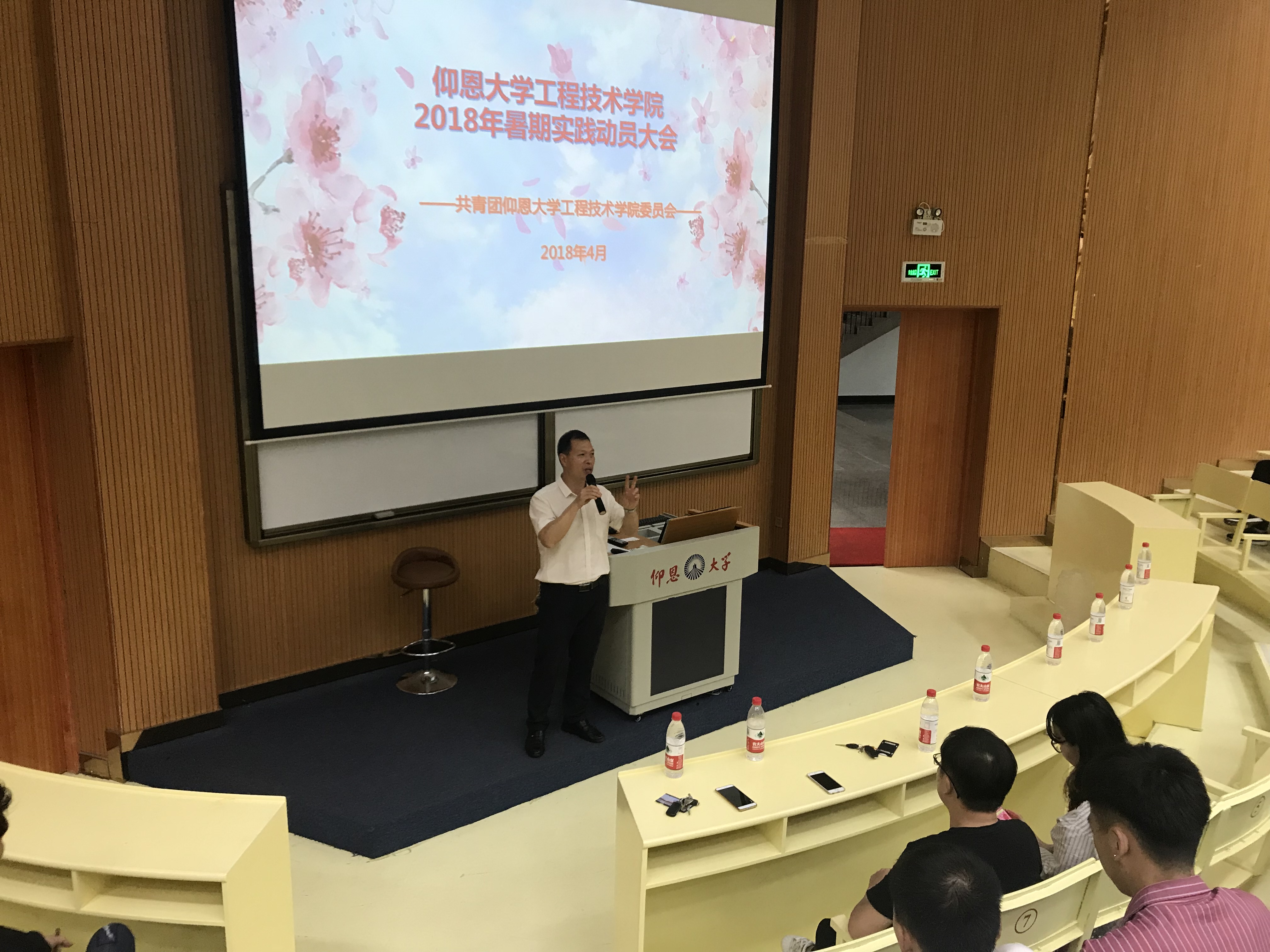 4月23日下午4点,yl6776永利集团2018年暑期实践动员大会在致知讲堂举行,yl6776永利集团党总支书记兼副院长曾凤生、党总支副书记吕思仁、学院团委书记许淑琴及2018级全体同学出席了本次大会。