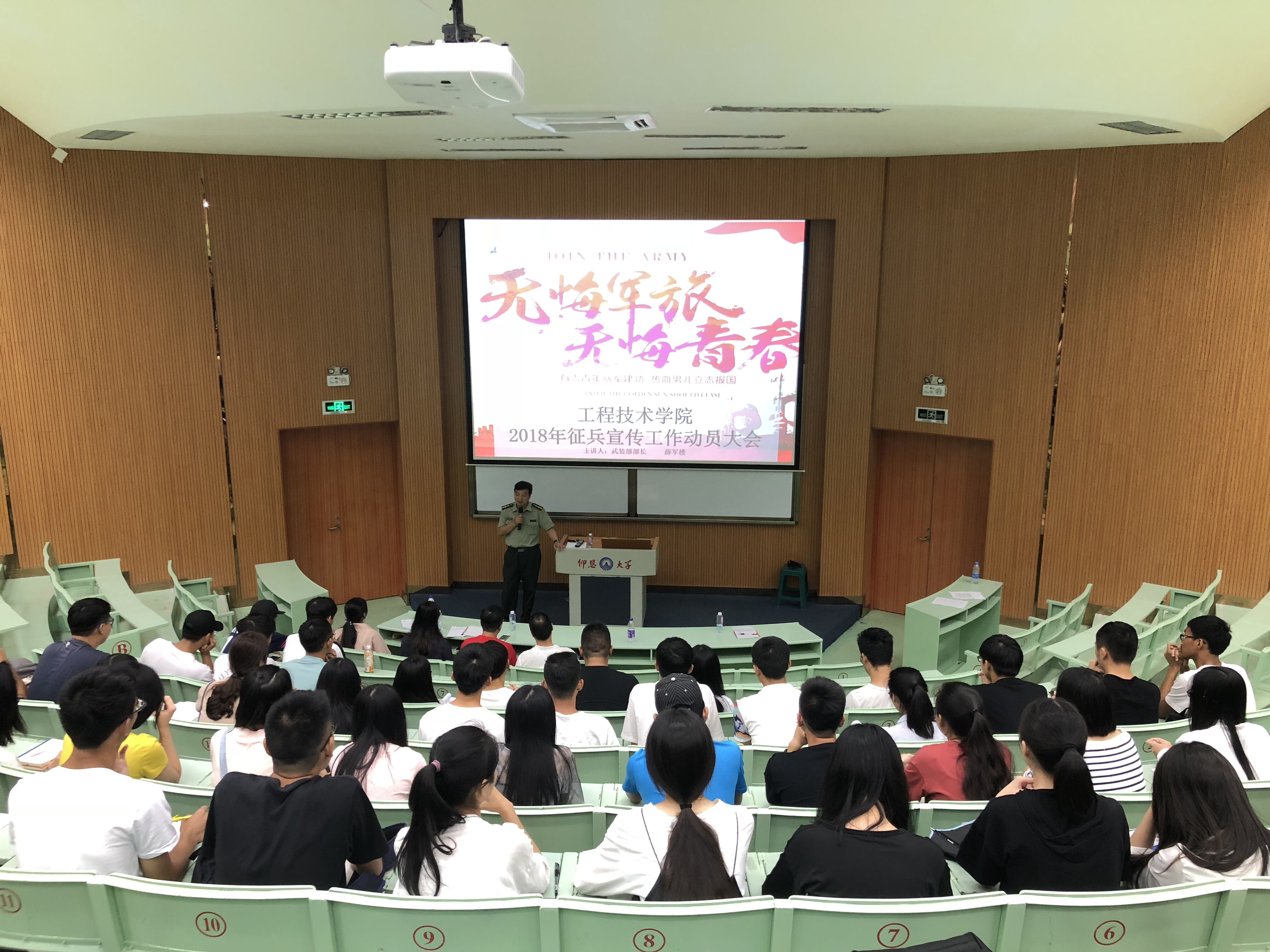 5月21日,yl6776永利集团在旧区和昌乐之讲堂举办大学生征兵入伍政策宣传教育主题活动。本次讲座邀请校武装部部长薛军楼主讲,学院党总支书记兼副院长曾凤生,总支副书记吕思仁,全体辅导员,学院各年级学生干部,党员,以及团委学生会骨干参加本次讲座。