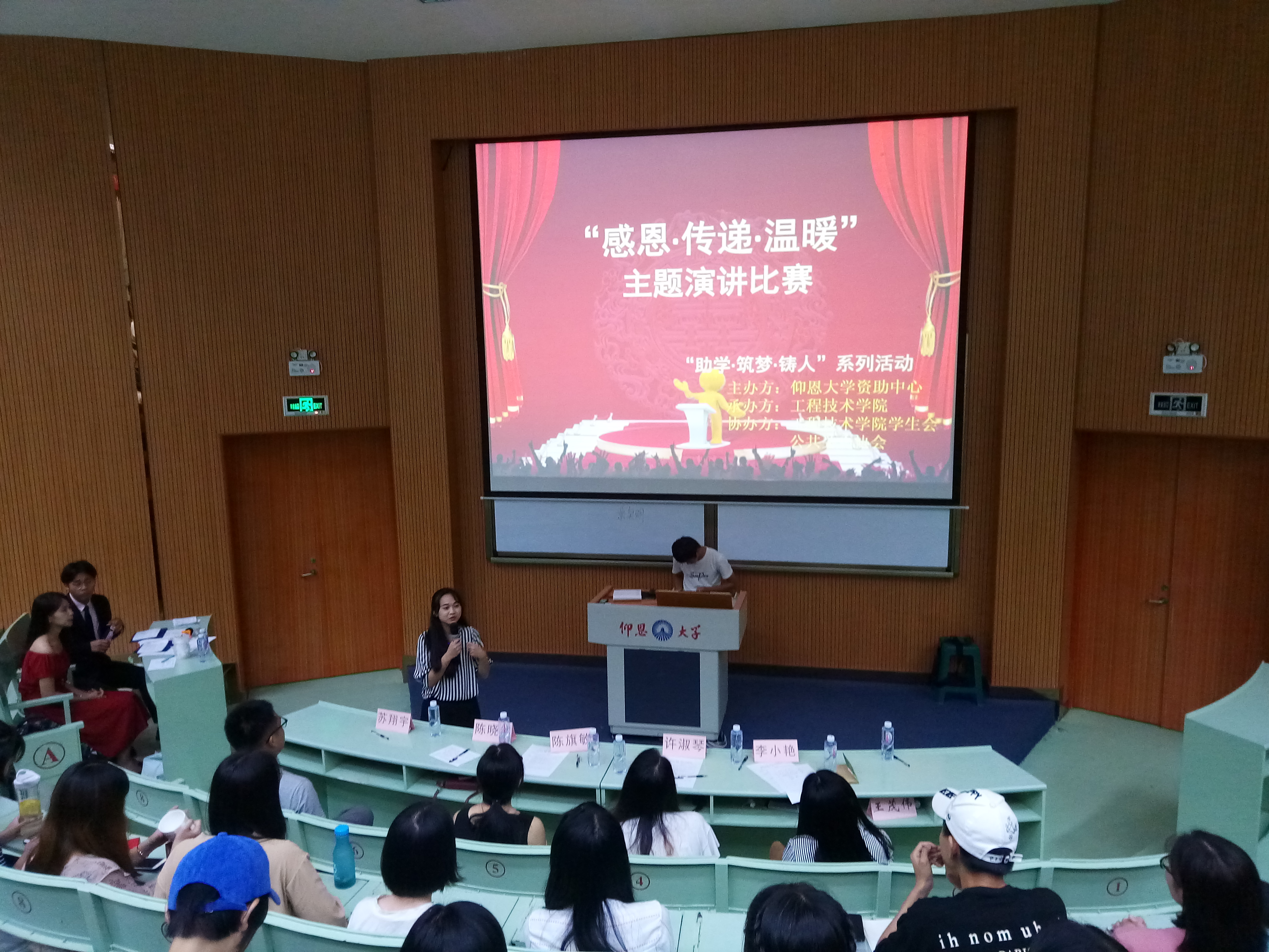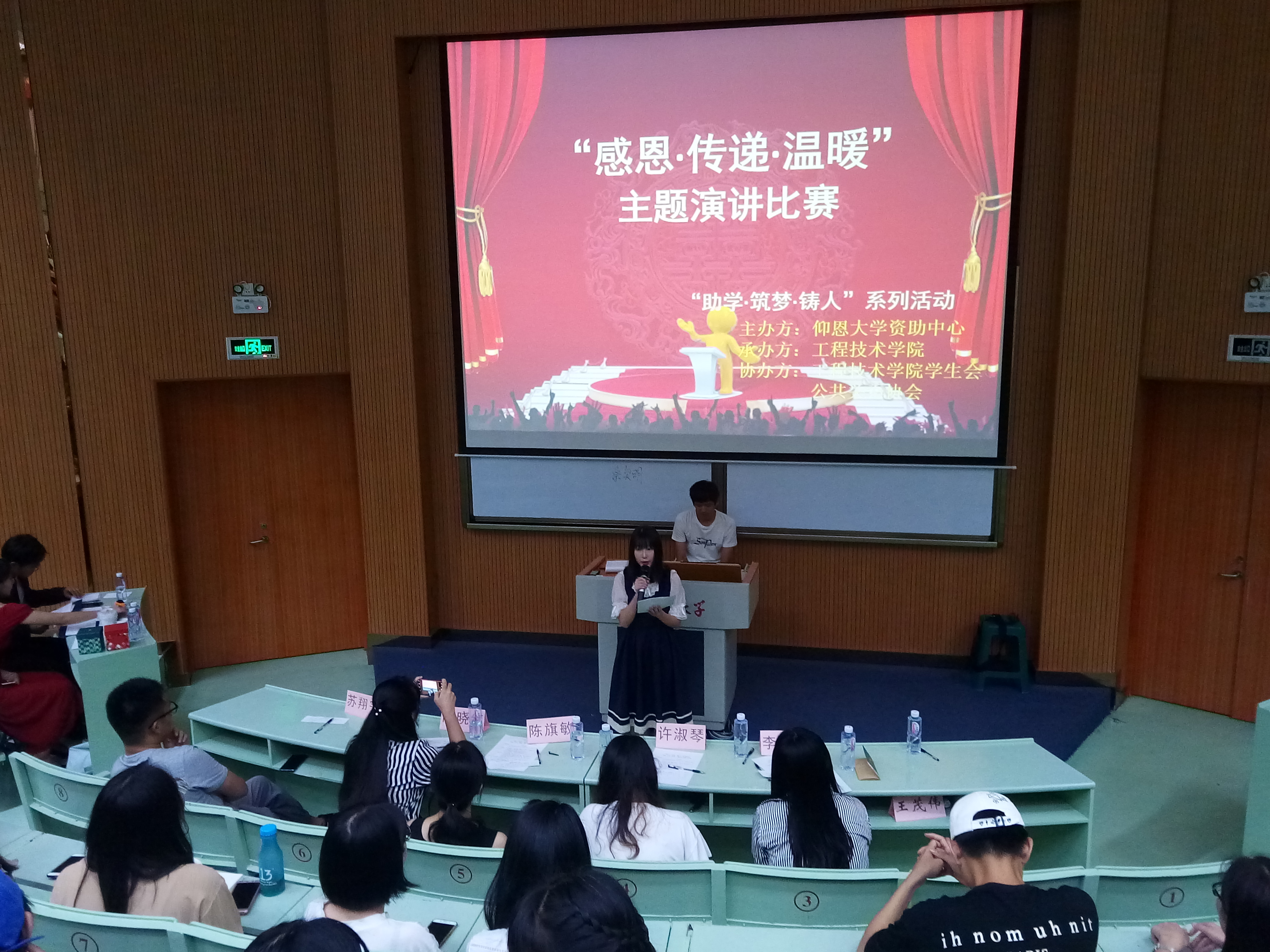 6月6日晚上7点半yl6776永利集团在旧区和昌乐之讲堂举行了“助学·筑梦· 铸人” 系列演讲活之“感恩.传递.温暖”主题演讲比赛。出席此次活动的嘉宾有学生会指导老师陈晓红、院团委书记许淑琴、学务秘书陈旗敏、教师李小艳。