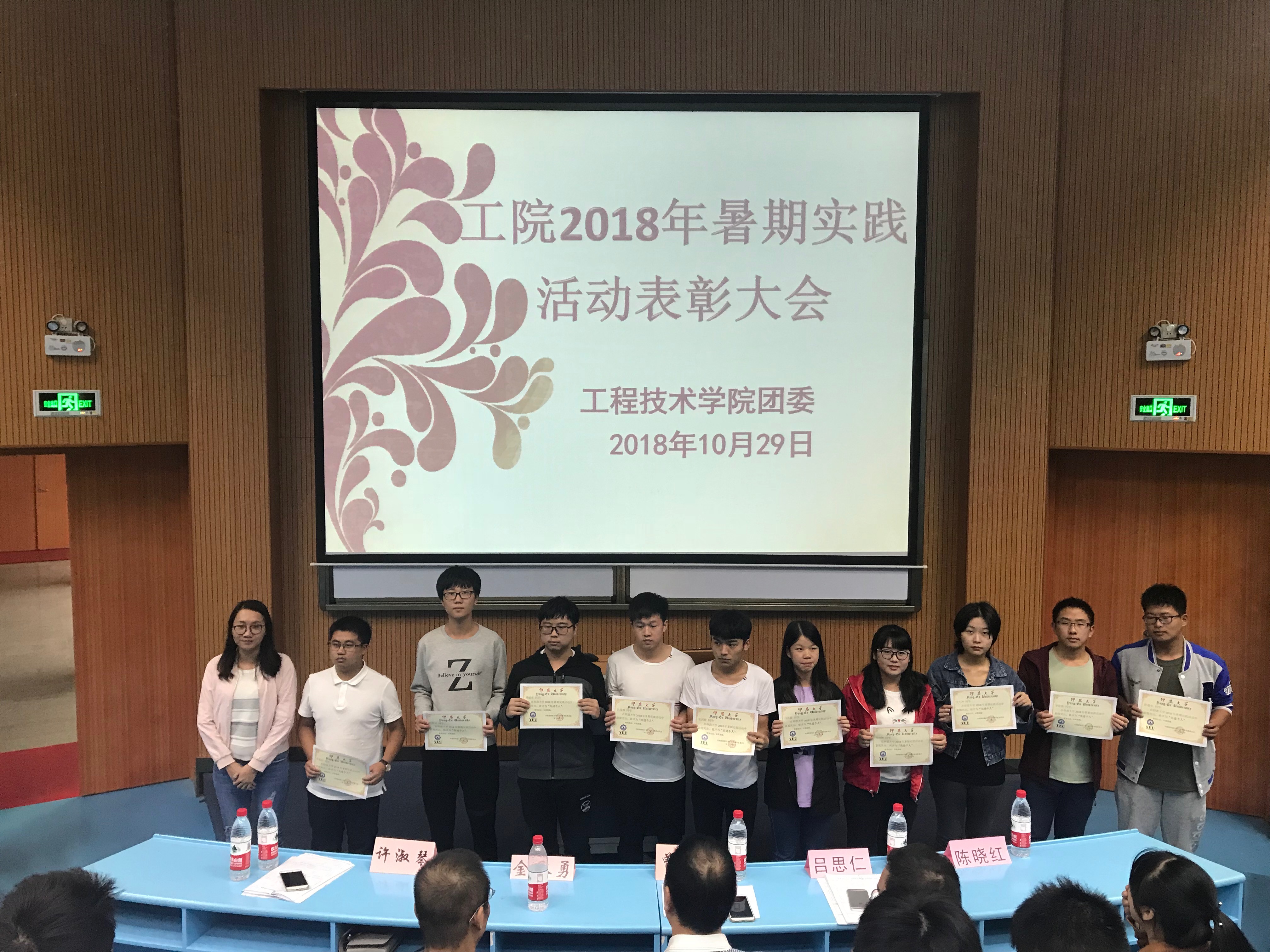 10月29日下午4点,yl6776永利集团团委在和昌求是讲堂举行yl6776永利集团2018年暑期实践活动表彰大会,学院党总支书记兼副院长曾凤生老师,学院常务副院长金承勇老师,学院党总支副书记吕思仁老师,学院团委书记许淑琴老师,学院学生会指导老师陈晓红老师,2018年全体工院新生及获奖人员出席本次大会。