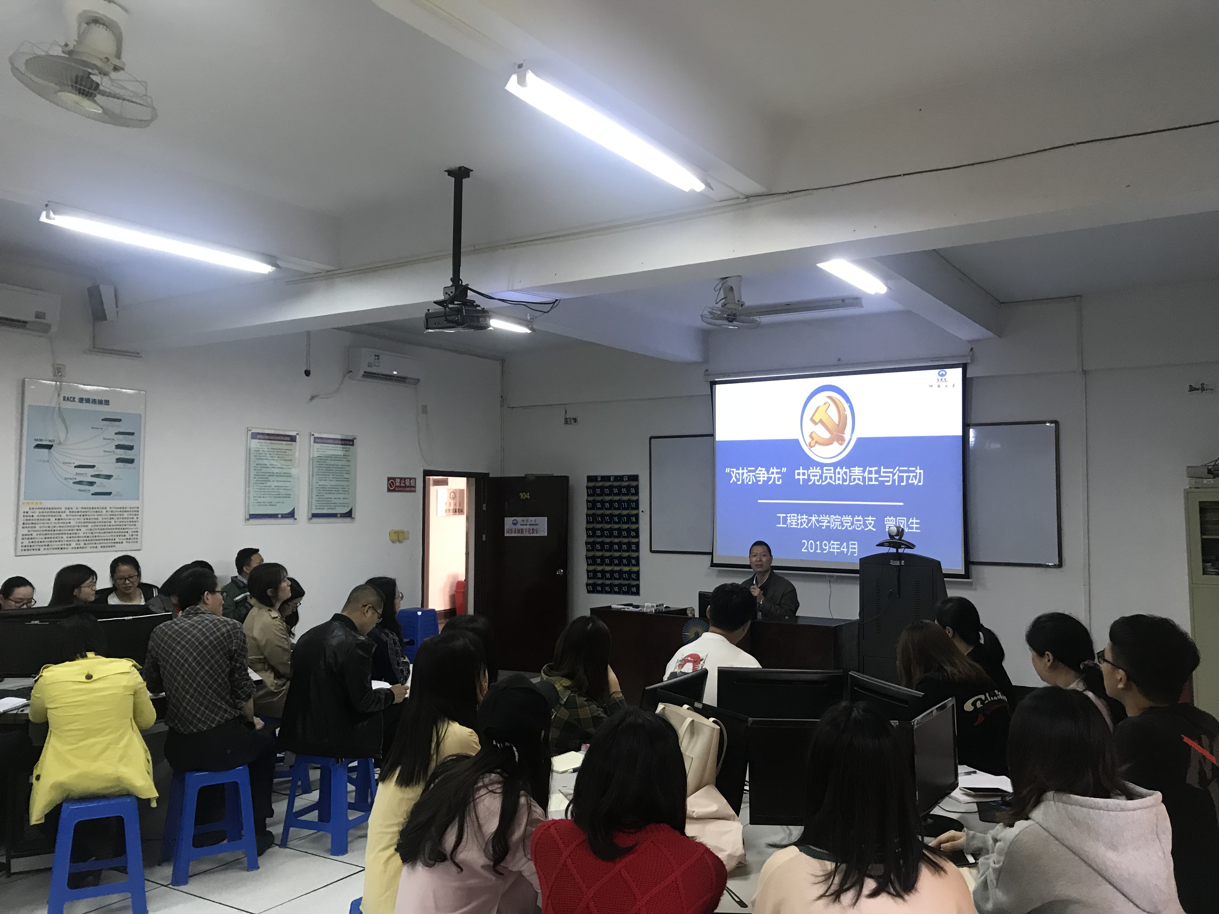 为进一步提高学院党员学习能动性、树立党员先锋模范作用,yl6776永利集团党总支于2019年4月18日在泽钏楼104开展“对标争先”学习会,明确“对标争先”中党员的责任和行动。学院所有师生党员参加学习会,会议由总支副书记吕思仁老师主持。