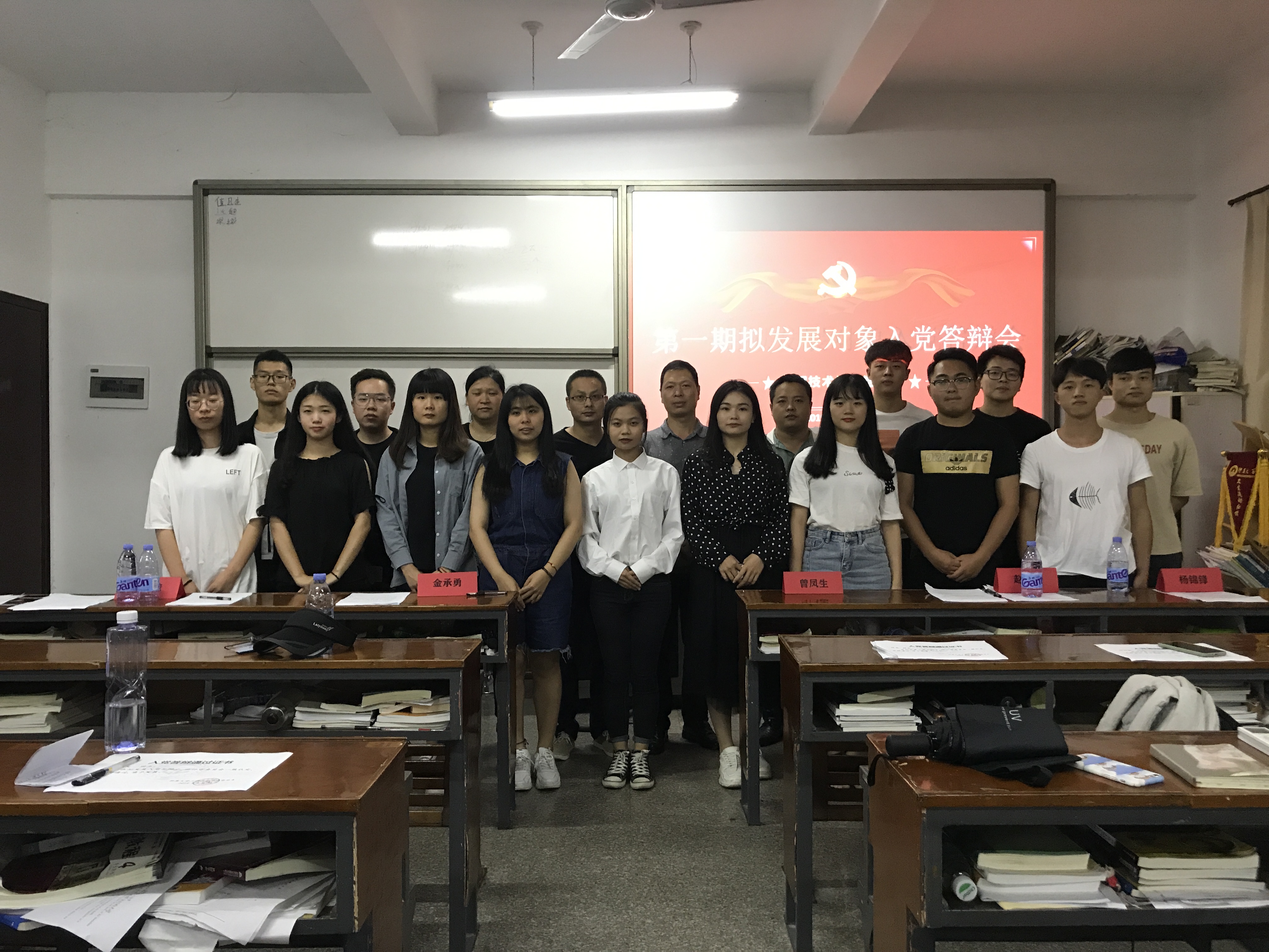 为贯彻落实“控制总量、优化结构、提高质量、发挥作用”的发展党员方针,严把“入口关”, 我院党总支积极探索完善,于2019年5月30日,在共和教学楼206、207教室举行了第一期拟发展对象答辩会,曾凤生、金承勇等全体党总支委员及学生支部书记、学生党员代表出席担任答辩评审团。此次活动的开展有效助推了“两学一做”学习教育常态化的深入。学院党总支以入党动机考察、党的基本理论学习考察、时事政策考察及现实表现考察作为答辩内容的重要组成部分,全面考察拟发展对象的综合素质。整个答辩过程分为自我陈述、提问答辩、评审团打分和宣布成绩四个环节。