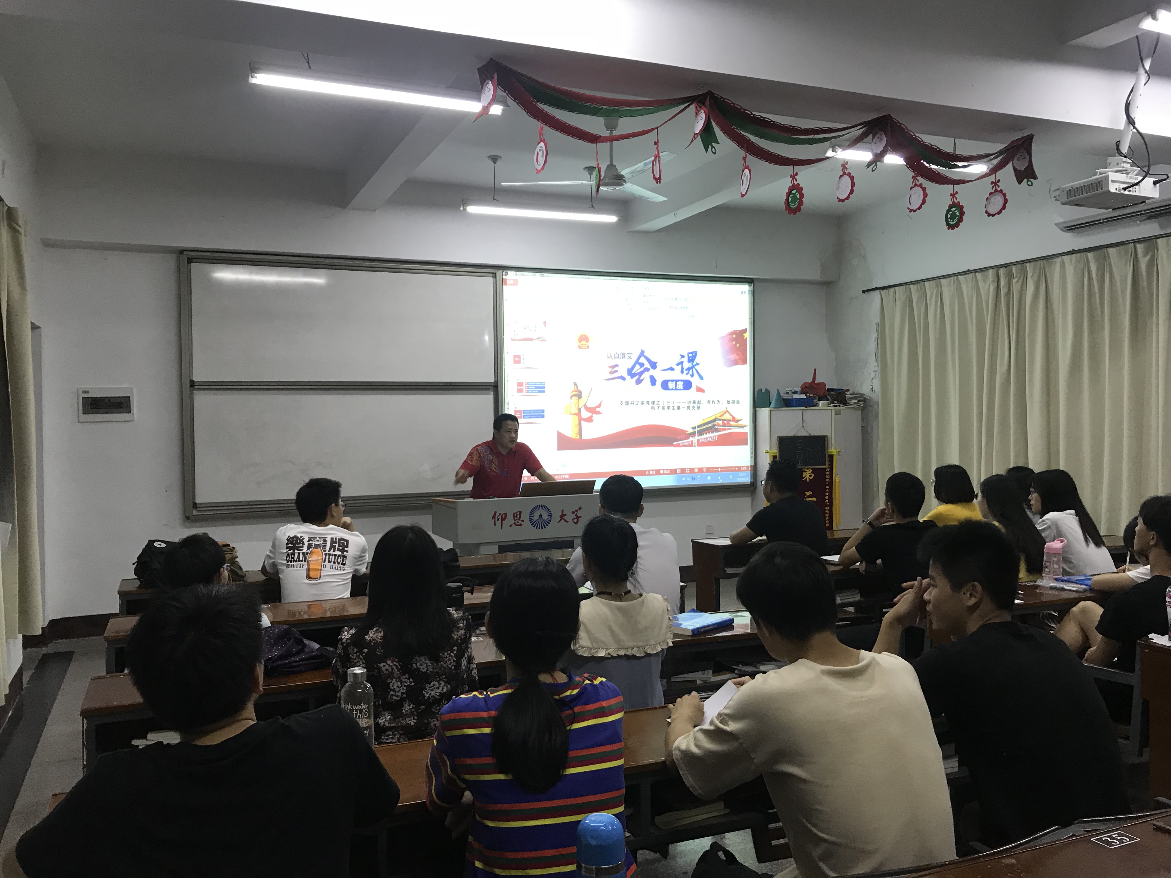 为认真落实三会一课制度,保持党员先进性,6月4日晚19:00,电子系学生第一党支部在共和楼开展“支部书记讲党课”活动,党支部书记赵宏岩同志为支部党员讲党课:讲奉献、有作为、敢担当。支部全体党员、预备党员、拟发展对象参加本次会议。