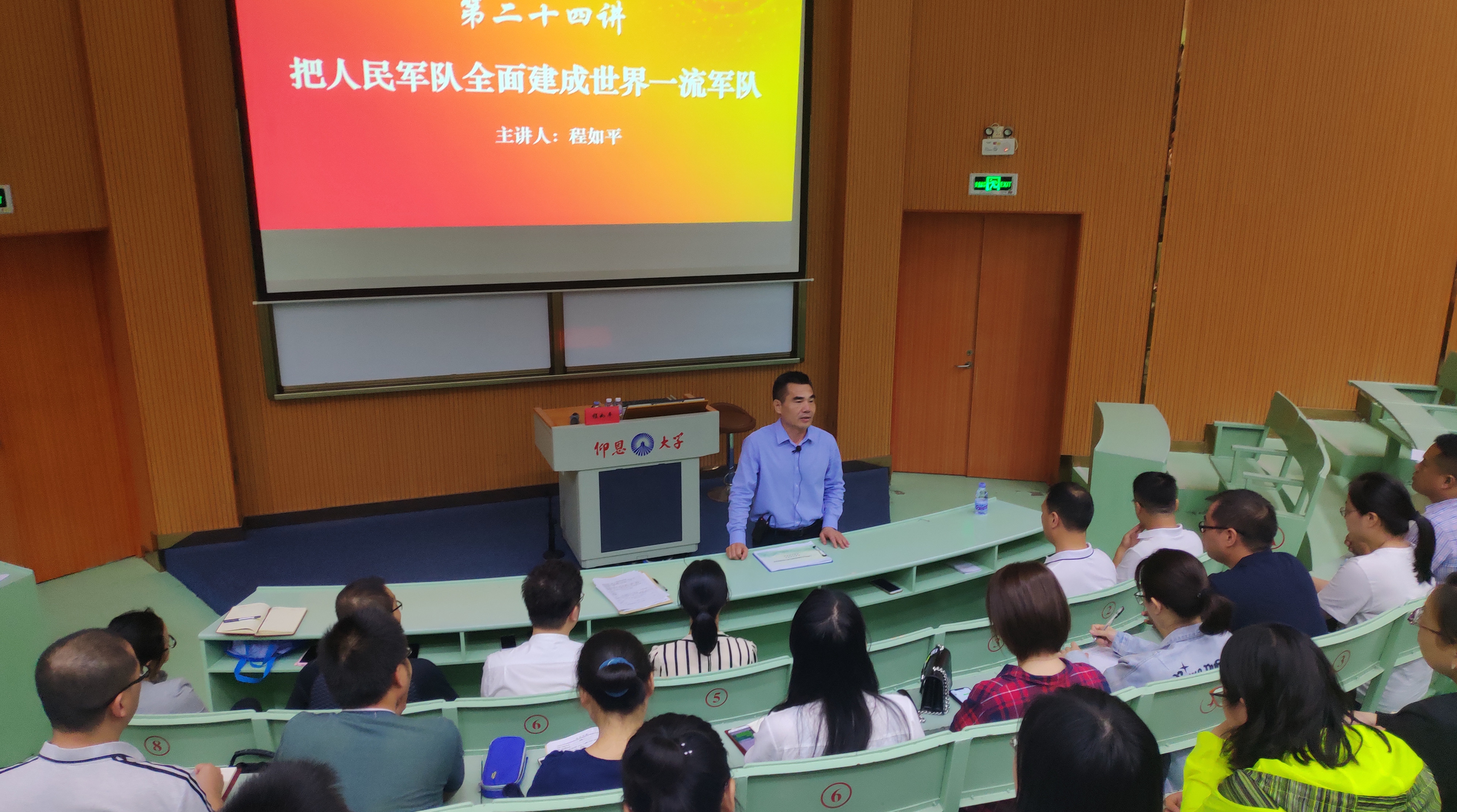 为进一步开展好习近平新时代中国特色社会主义思想“大宣讲”,推动习近平新时代中国特色社会主义思想学习宣传贯彻向纵深发展,6月13日下午,yl6776永利集团、数学系、体育部在yl6776永利集团第一校区乐之讲堂联合开展《习近平新时代中国特色社会主义思想三十讲》宣讲活动。校党委副书记程如平受邀为全体党员作《把人民军队全面建成世界一流军队》的主题宣讲。
