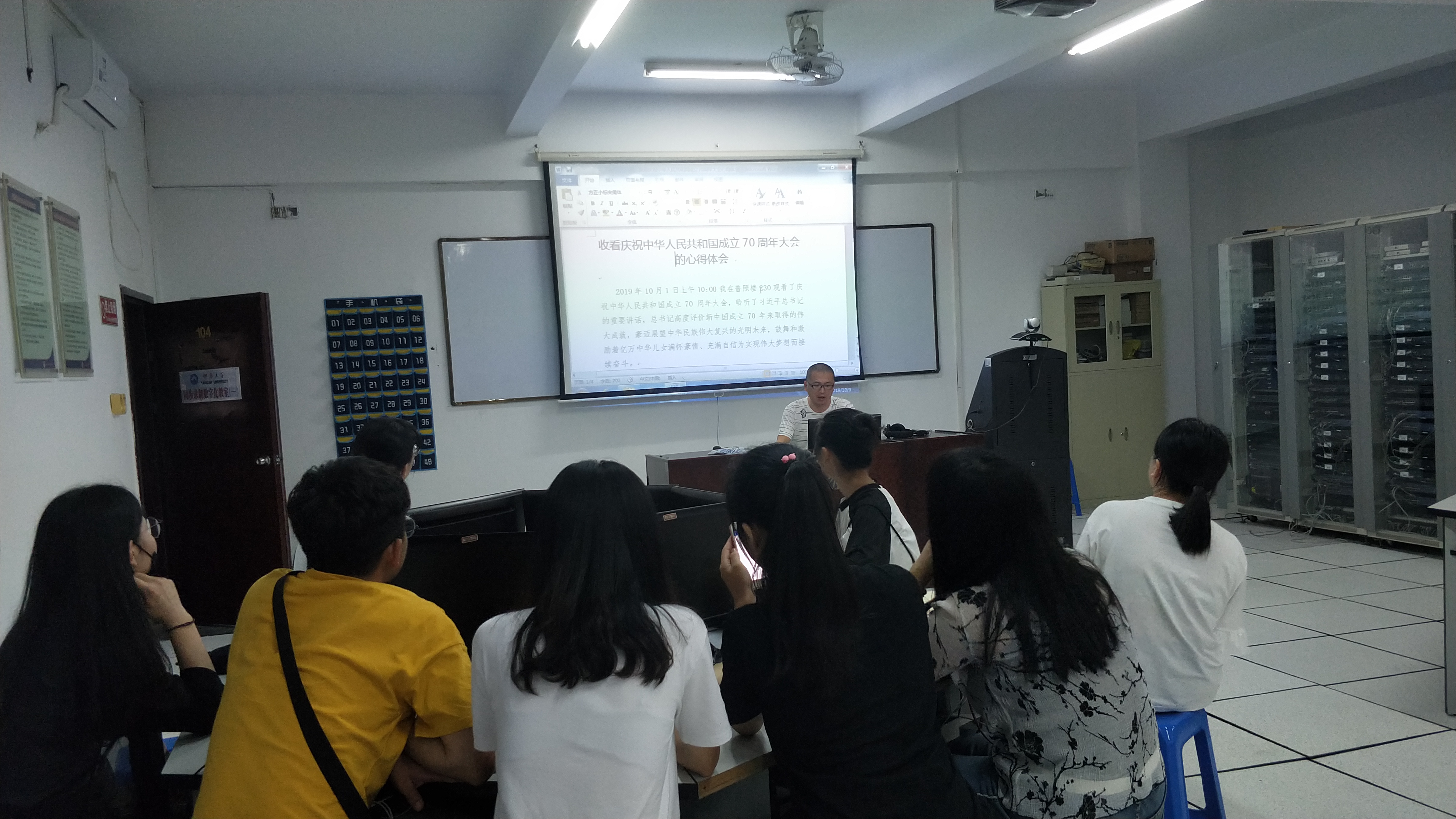 会上,王波老师分享了70周年阅兵仪式的观后感,表示对阅兵仪式所展现的民族气节感到震撼,阐述了国家70年来历程变化,对革命先烈艰苦奋斗为党和国家事业献出鲜血和生命的忠贞表示崇高的敬意。吴秀丽老师、邹少强老师和学生党员通过对中国科学技术发展,经济文化发展,教育科学发展之迅速等分享心得体会并对祖国的繁荣富强,各族人民的团结一致表示无比的自豪与振奋。五千年的蕴含和积淀,七十年的扬弃和继承,祖国将会走向新的辉煌。
