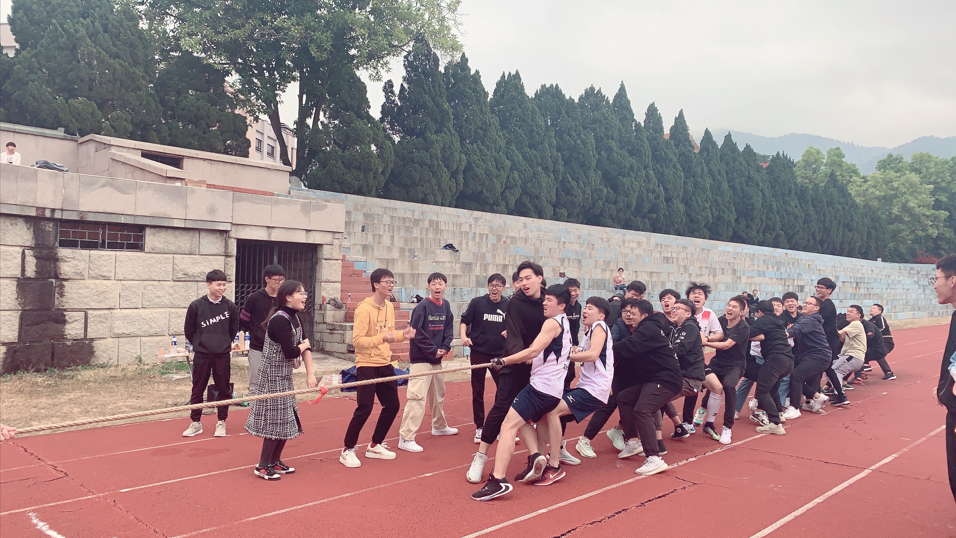 本次活动共分纸杯传水、单脚火车跑、结对而行、袋鼠跳、拔河比赛五个单元。每个单元各班派出15-20名同学组成一支队伍参赛,各单元比赛第一名积5分 第二名积3分,第三名积2分 第四名积1分 第五名不加分。最后分数最高者为最终获胜者,排名按照分数类推下去。同学们积极备战,比赛正式开始前操场上来回训练,各项目竞争精彩纷呈,充分展现了团队合作力量,发扬了永不言弃、奋发向上的精神。
