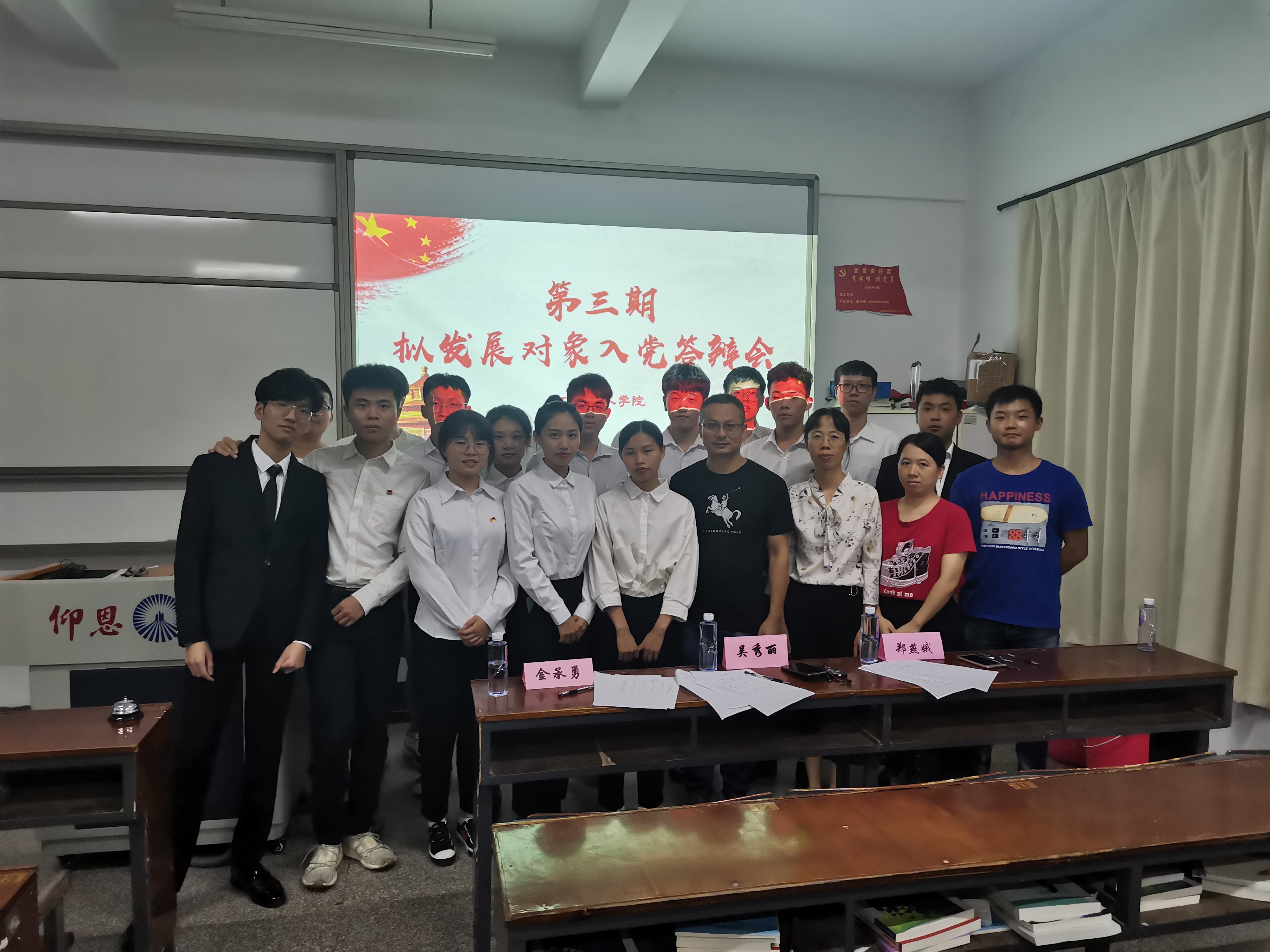 为进一步全面考查党员拟发展对象,加强对拟发展对象的党性教育,增强吸纳党员工作的透明度,我院党总支于9月7日在共和教学楼208、209、210教室开展党员拟发展对象入党答辩会,我院常务副院长金承勇,副书记吕思仁,支部书记赵宏岩、王波等参加本次会议并担任答辩评审团。