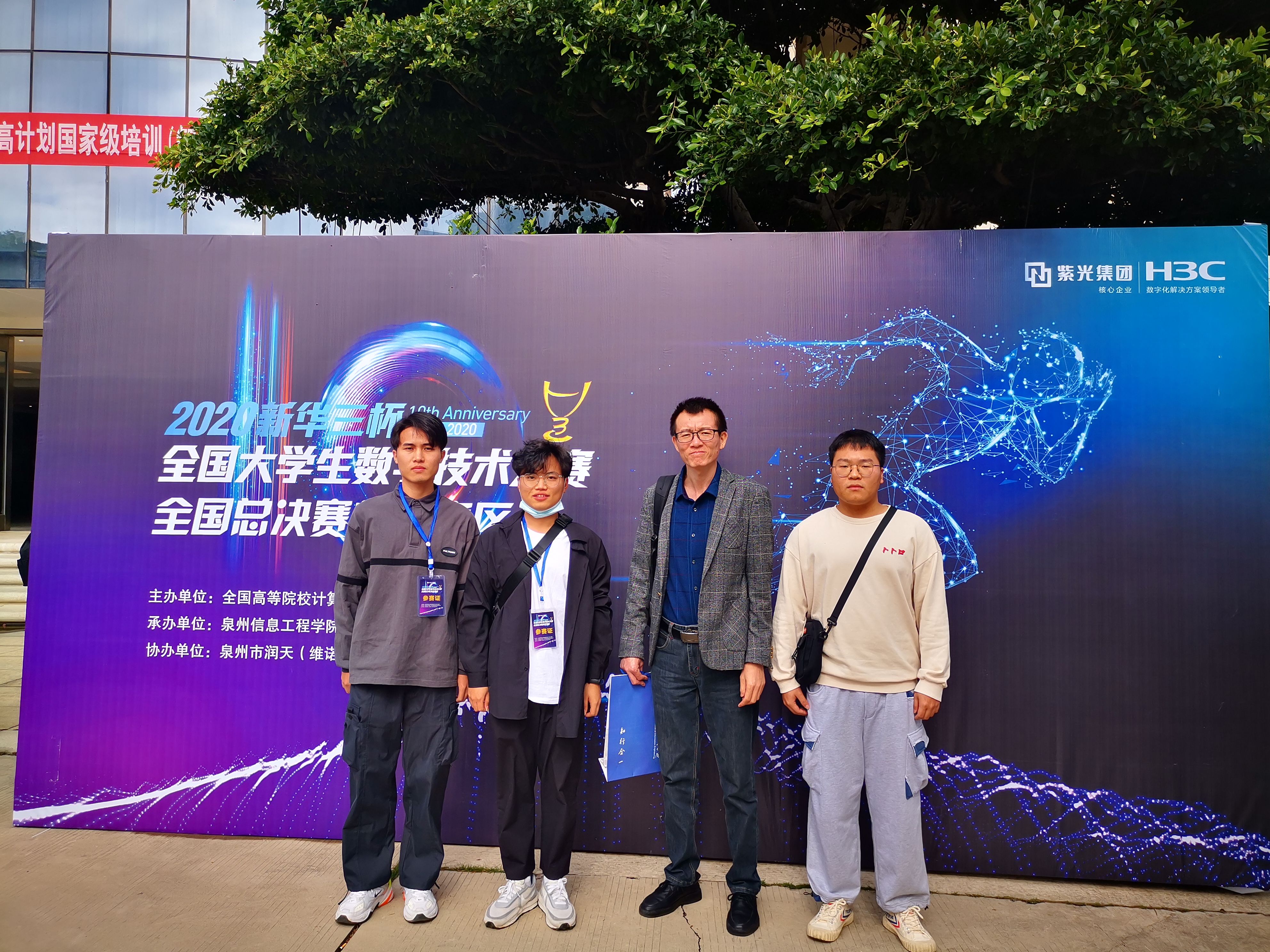 2020年12月5日,“新华三杯”全国大学生数字技术大赛决赛在泉州信息工程学院举办。经过预赛选拔,我校共有3名同学(江道镇、陈鑫、严钟灵)进入决赛,江道镇同学在本次比赛中荣获三等奖,陈鑫、严钟灵同学荣获优胜奖。