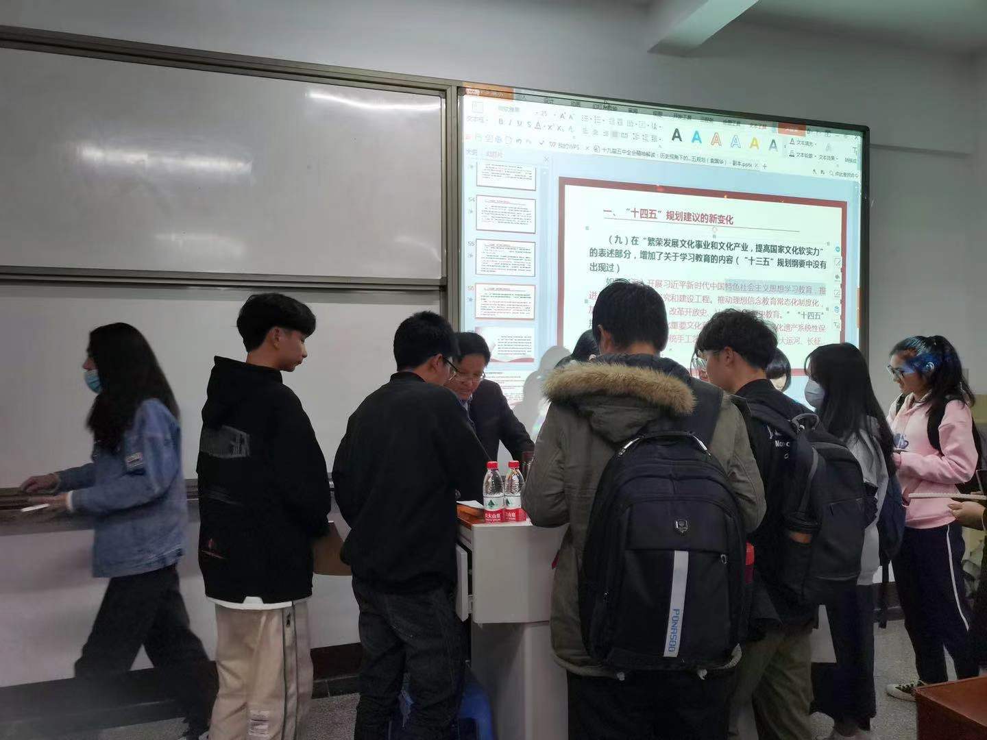 报告会后,袁国华老师与学院师生代表,就如何深入贯彻党的十九届五中全会精神进行交流,面对面答疑释惑。