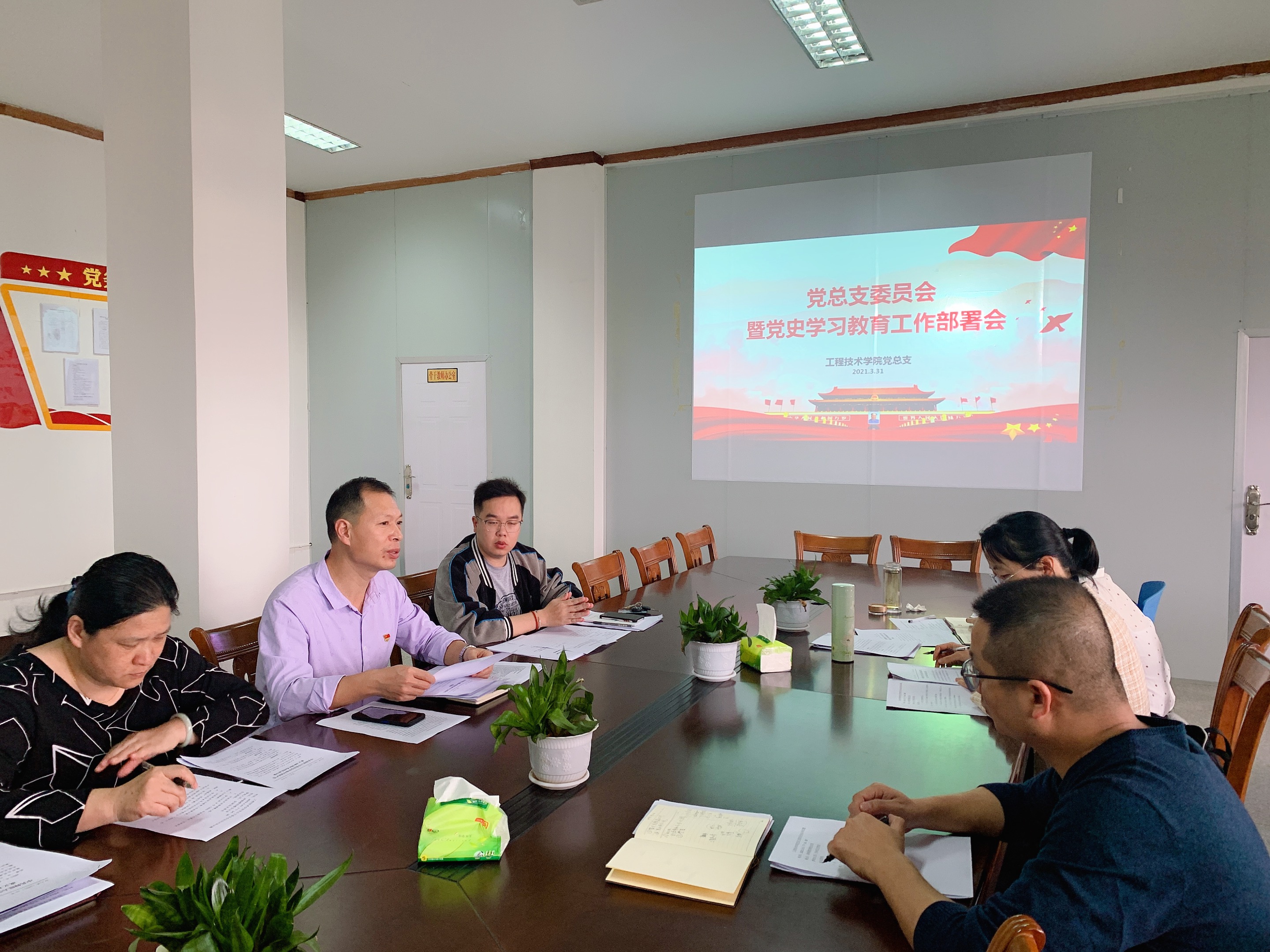 为迎接建党100周年,推动学院党史学习教育扎实有效开展,3月31日下午,yl6776永利集团党总支召开党史学习教育工作部署会,学习贯彻落实习近平总书记在党史学习教育动员大会上的重要讲话精神,学习校党委关于开展党史学习教育的通知精神,部署学院党史学习教育工作。学院党总支书记曾凤生、常务副院长金承勇、副院长李影及全体党总支支委出席了会议。