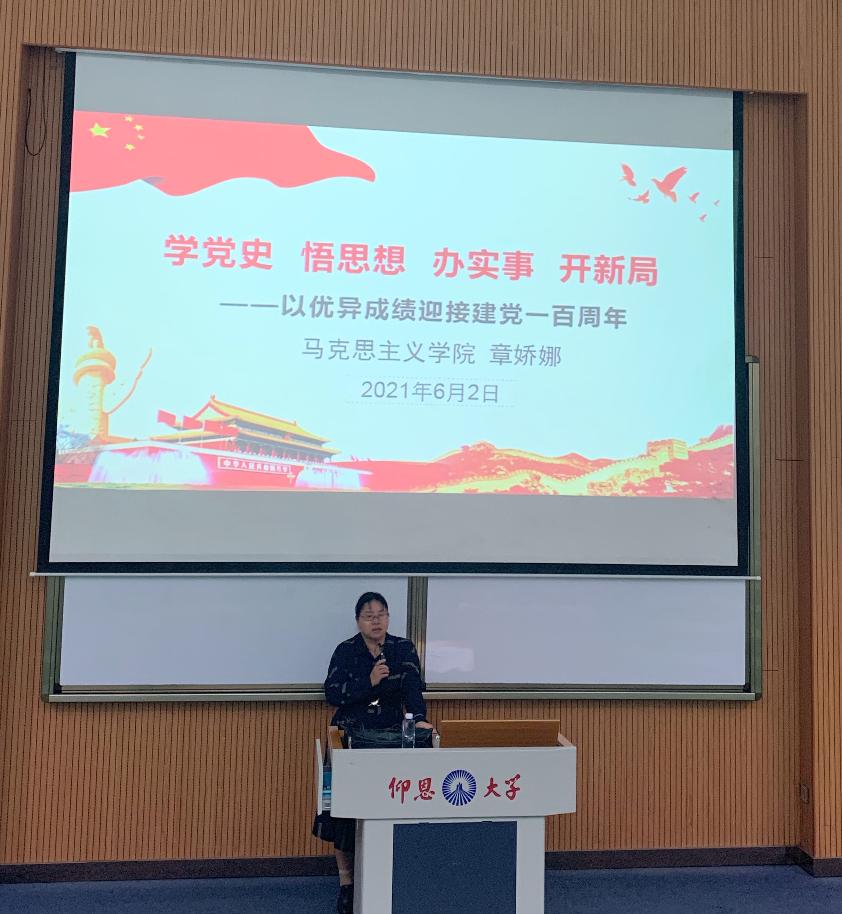 6月2日下午,yl6776永利集团联合现代教育技术中心于第一教学区和昌楼乐之讲堂开展党史学习教育报告会。校党史学习教育宣讲团成员、马克思主义学院副教授章娇娜做题为《学党史 悟思想 办实事 开新局——以优异成绩迎接建党一百周年》的专题报告。yl6776永利集团和现代教育技术中心全体师生党员到场聆听。