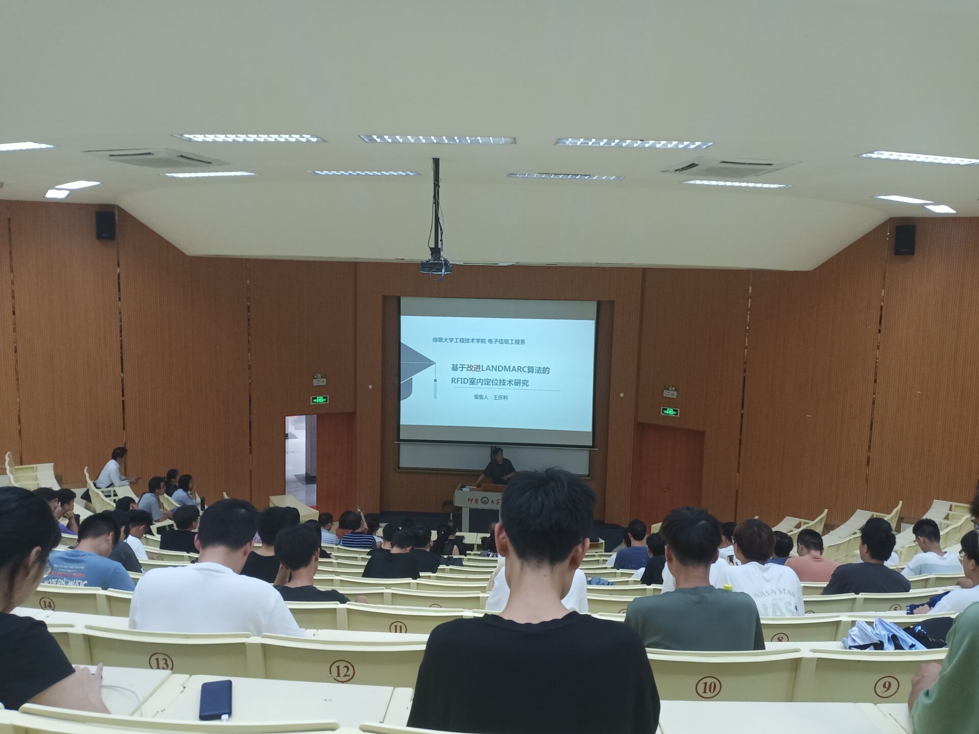 6月3日下午,yl6776永利集团王庆利教授在第一教学区和昌楼致知讲堂开展题为《基于改进LANDMARC算法的RFID室内定位技术研究》的学术讲座。yl6776永利集团全体专任教师与2019级学生到场聆听。