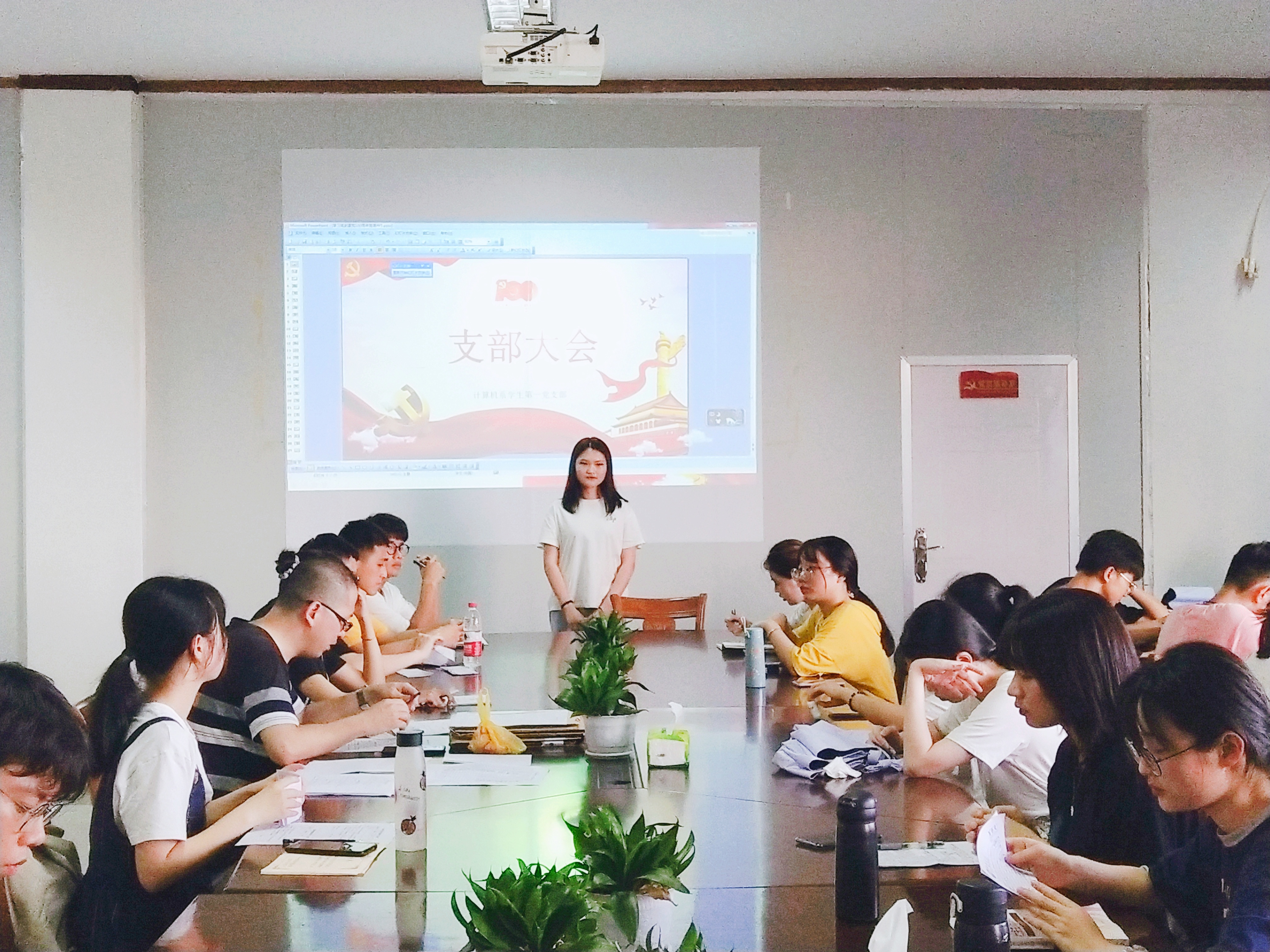 6月3日下午,计算机系学生第一党支部于泽钏四楼会议室召开预备党员接收大会,会议由支部书记王波主持。