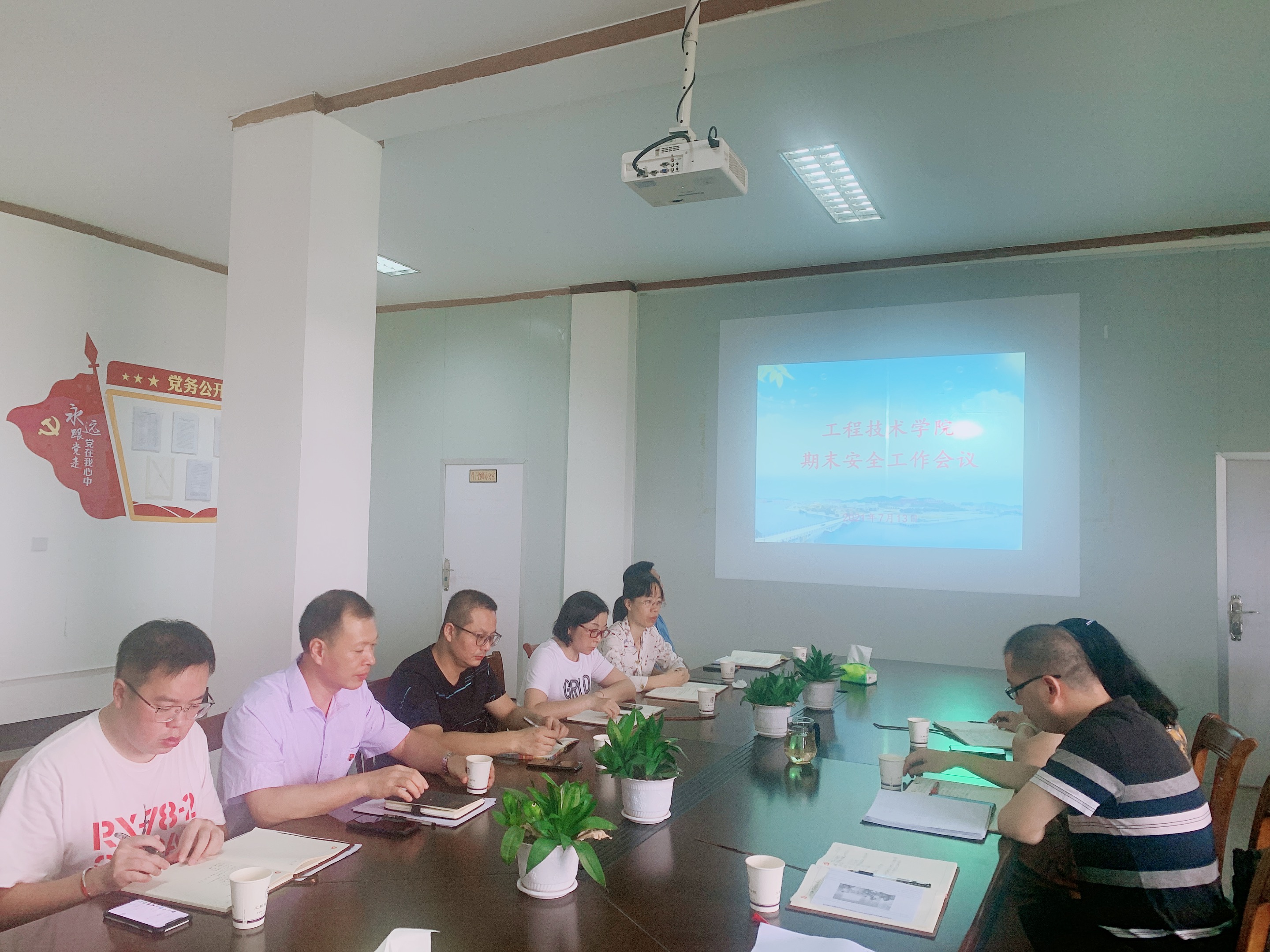 7月13日上午,我院召开期末安全工作会议,部署并传达学校《关于加强期末及暑期学校安全工作的通知》【2021年7号】和《关于发布暑期安全提示的通知》【2021年8号】相关文件精神,会议由常务副院长金承勇主持,学院党政班子全体成员出席。