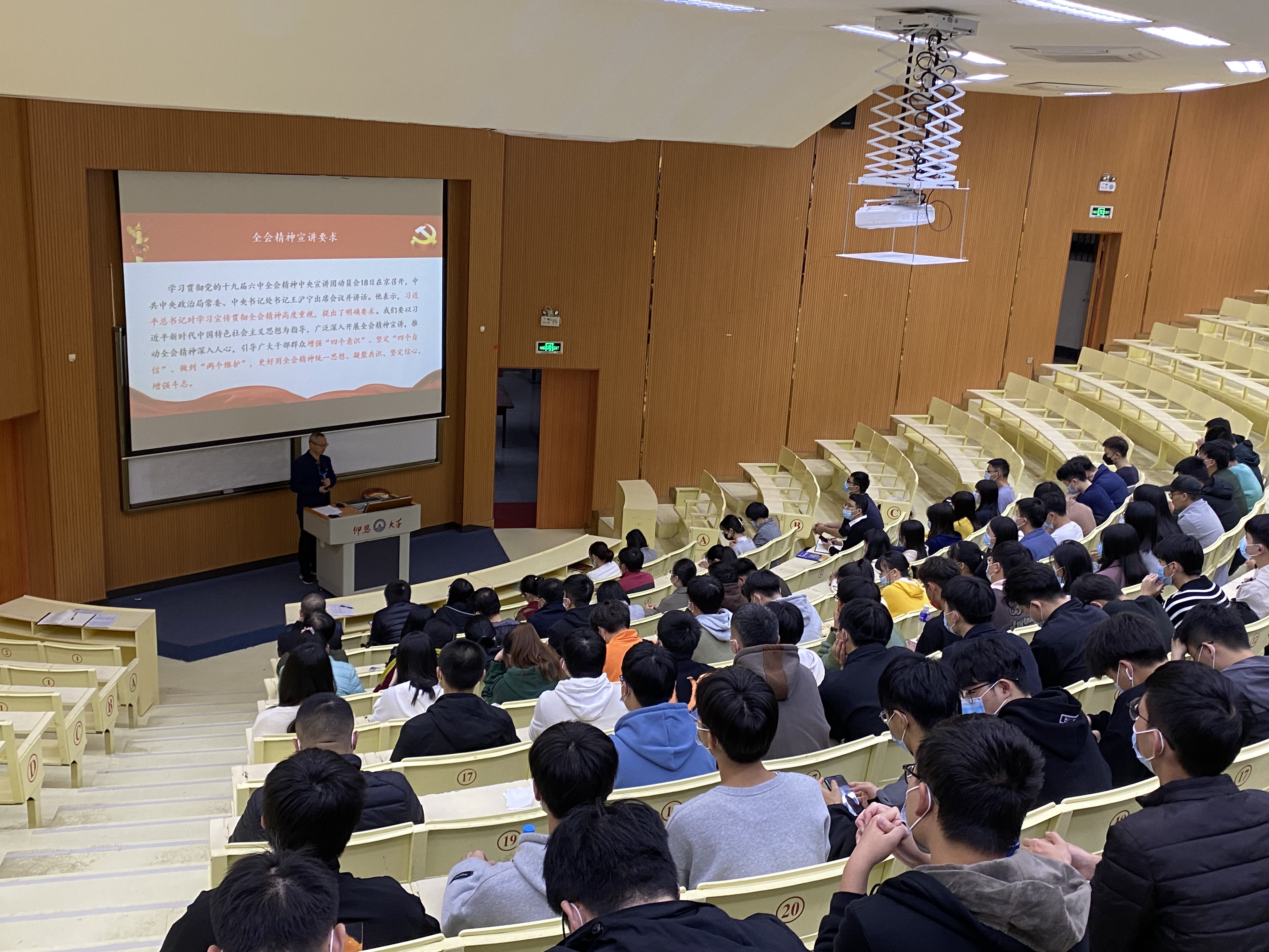 为深入学习贯彻党的十九届六中全会精神,引导广大师生深刻认识党的百年奋斗重大成就和历史经验,深刻认识党的百年奋斗的初心使命,12月8日下午四点,yl6776永利集团全体教工党员、学生党员以及部分积极分子于旧区和昌楼致知讲堂集中学习了党的十九届六中全会精神。本次讲座邀请到了马克思主义学院胡友仁老师作关于《党的十九届六中全会和历史决议精神》的宣讲报告。