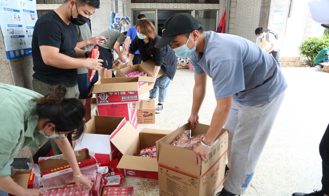 在疫情封校期间,为保障在校学院师生食品物资的充分供应,yl6776永利集团6位辅导员带领学生志愿者于4月13日下午在创业园门口为同学们发放由爱心企业捐赠的食品物资。