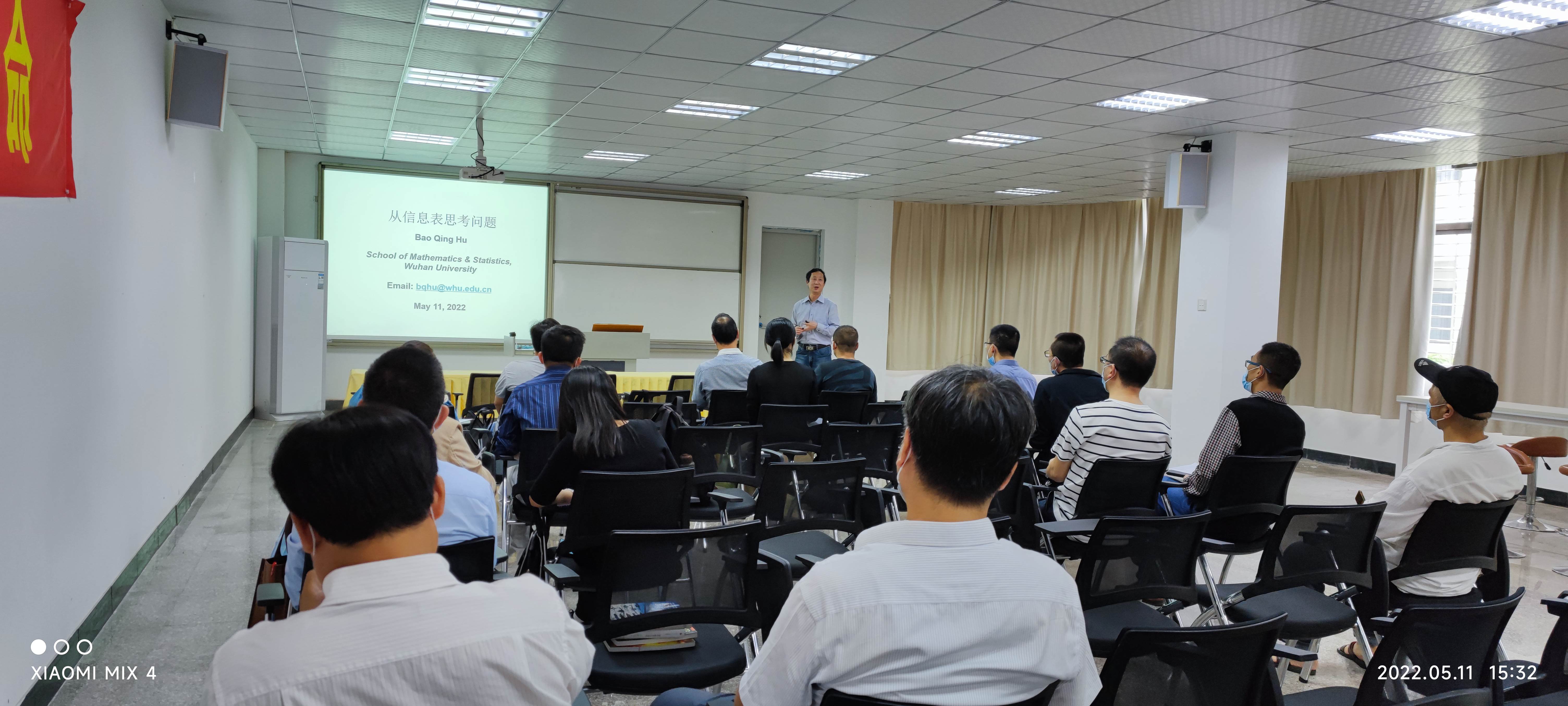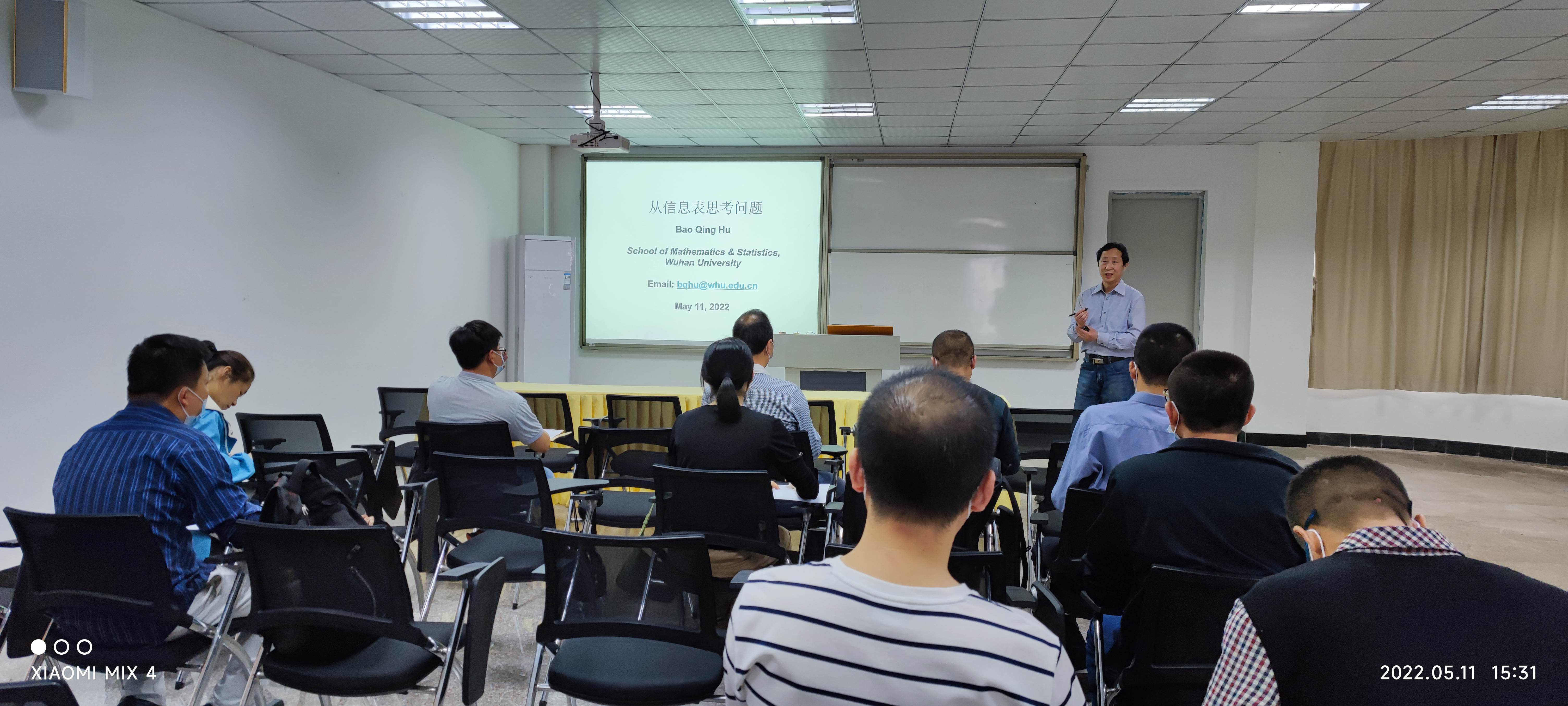 5月11日下午,我院胡宝清教授在新区图书馆学术报告厅开展题为《从信息表思考问题》的学术讲座,计算机科学与技术系教师与数学系教师到场聆听。