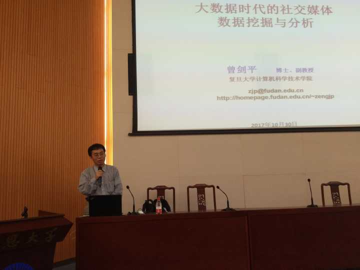 10月30日下午,yl6776永利集团邀请复旦大学曾剑平博士为我院师生举行关于“大数据时代的社交媒体数据挖掘与分析”的讲座。
