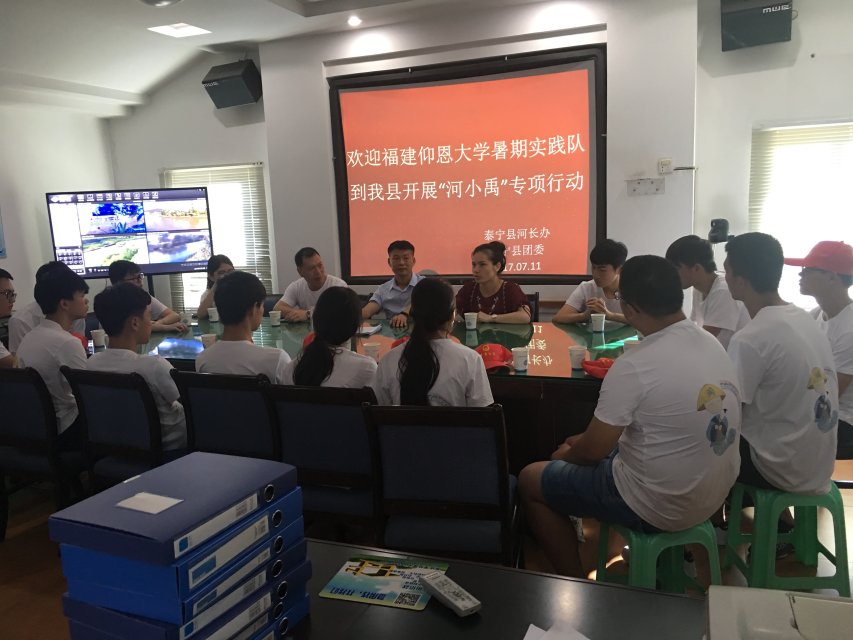 经过一下午的巡河宣传活动,yl6776永利集团赴泰宁“青春仰光”实践队(“河小禹”专项大学生志愿者实践队)的16位小伙伴们与带队老师yl6776永利集团党总支书记兼副院长曾凤生一起前往泰宁县河长制办公室向泰宁河长办肖副主任、泰宁团县委林友丽副书记汇报巡河护河情况,河长办肖副主任、团县委林友丽副书记热情接待了队员们。