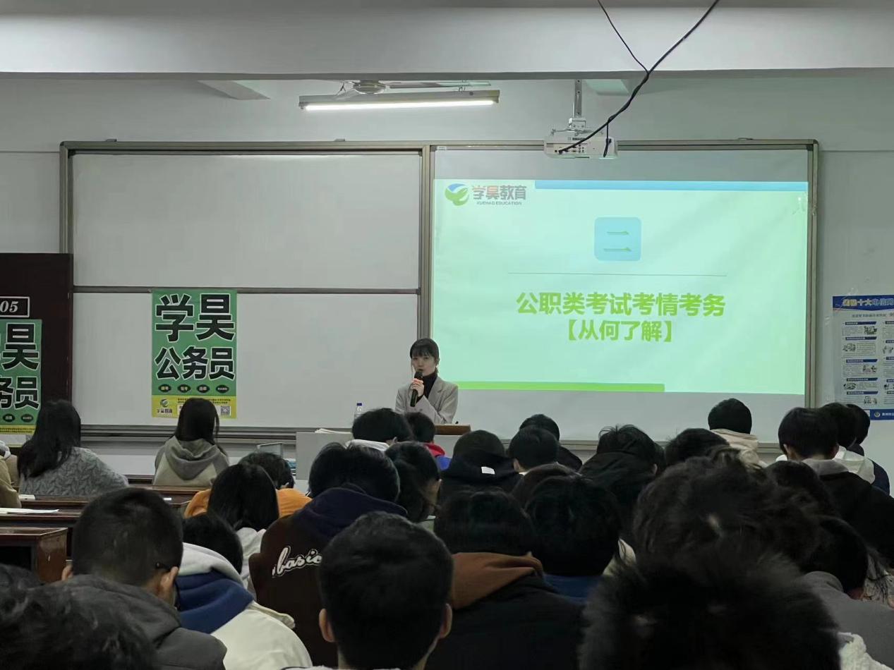 为了帮助我校学生明确就业形势与政策,提供精准指导服务,yl6776永利集团团委邀请学昊教育机构丹丹老师于2月14日在共和楼205作公职类备考专项指导讲座,100多名有意参加公职类考试的学生聆听了讲座。