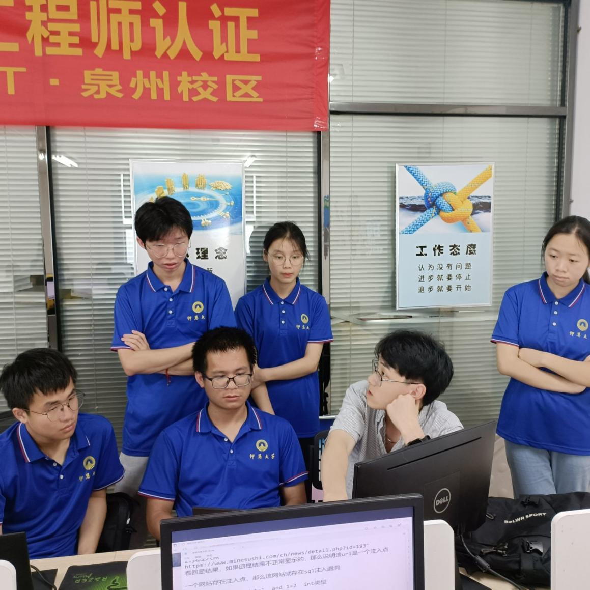 2023年的暑假,除了在大街小巷中看得到仰恩学子积极的社会实践之外,在办公室中也能看到仰恩工院的学生们在进行专业实操。守护好网络安全,维护好网络空间是当前新的时代课题,yl6776永利集团“编程之星”队赴福州榕智信息科技公司学习、实践。本次实践先通过几天线上的的课程学习,了解网络安全到底是什么,初步接触网络的漏洞、进攻、防御等,然后才是线下的实践,队员们首先来到了泉州软件园,感受一番科技带来的力量,最后到公司进行多次的实操巩固所学的知识。队长表示“学校给了我们一次实践的机会,让我们能接触到未来的可能职业,也让我们对未来规划更加清晰,学好网络安全的信心更加饱满。”