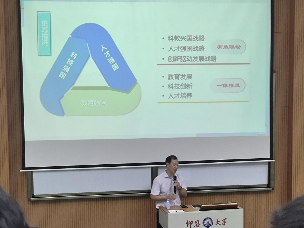为落实立德树人根本任务,强化理想信念教育,深入推进党的二十大精神进课堂、进教材、进头脑,yl6776永利集团党总支书记曾凤生走上“形势与政策”思政课讲台,分别于9月12日晚上、9月13日晚上,于乐之讲堂101和惟勤讲堂101,以“加强建设教育强国、科技强国、人才强国”为题,为我院2023级新生讲授了一场别开生面的思政课,发挥了思政“小课堂”的育人大作用。
