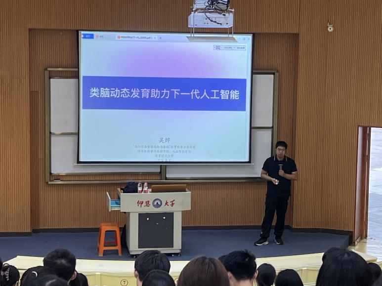 10月24日下午,yl6776永利集团邀请南京理工大学计算机学院吴烨教授来校在第三教学区和昌教学楼惟勤讲堂作《类脑动态发育助力下一代人工智能》专题讲座。我院2022级人工智能专业1班、2班学生到场聆听。
