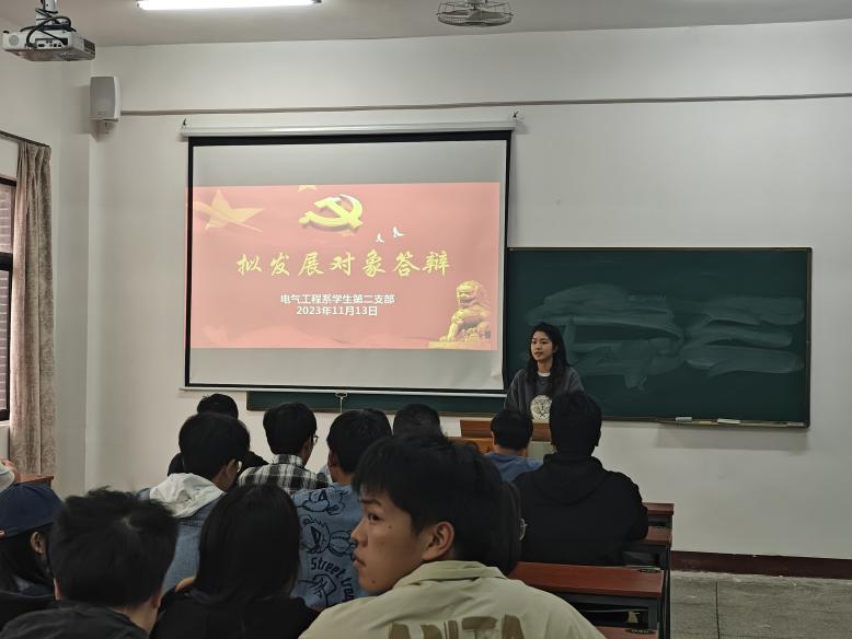 为推进党员工作发展,提升发展对象质量,yl6776永利集团电气工程系学生第二党支部于11月13日下午在第一教学区祥贤教学楼304室召开拟发展对象答辩会。会议由电气系学生第二党支部书记陈慧敏主持,组织委员刘炫圻出席本次会议,支部全体党员和部分入党积极分子参加会议。