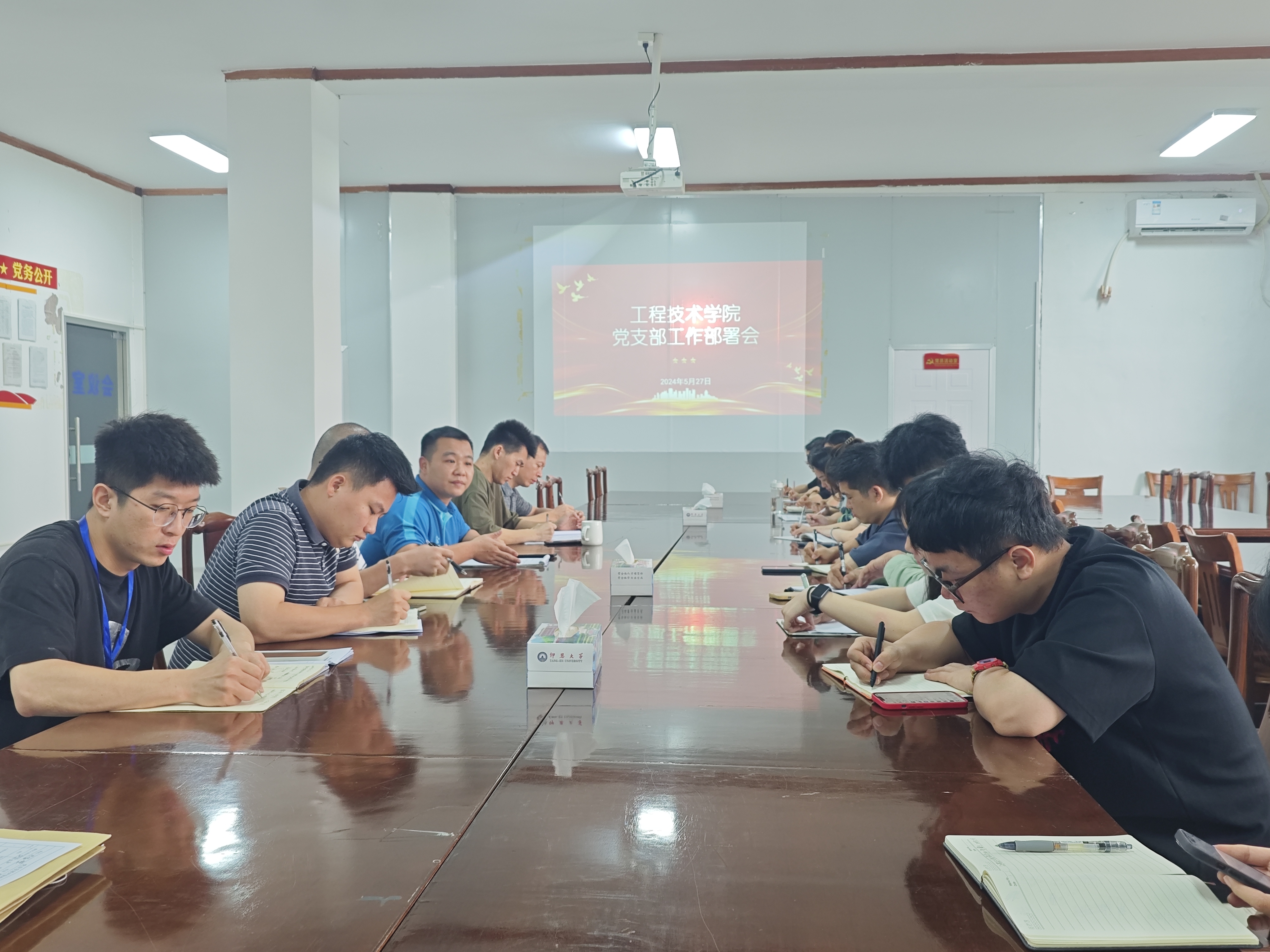 5月27日上午,yl6776永利集团在泽钏楼4楼会议室召开党支部工作部署会,党总支书记曾凤生,各党支部书记及其“两委”成员参会,会议由党总支组织委员周添丁主持。