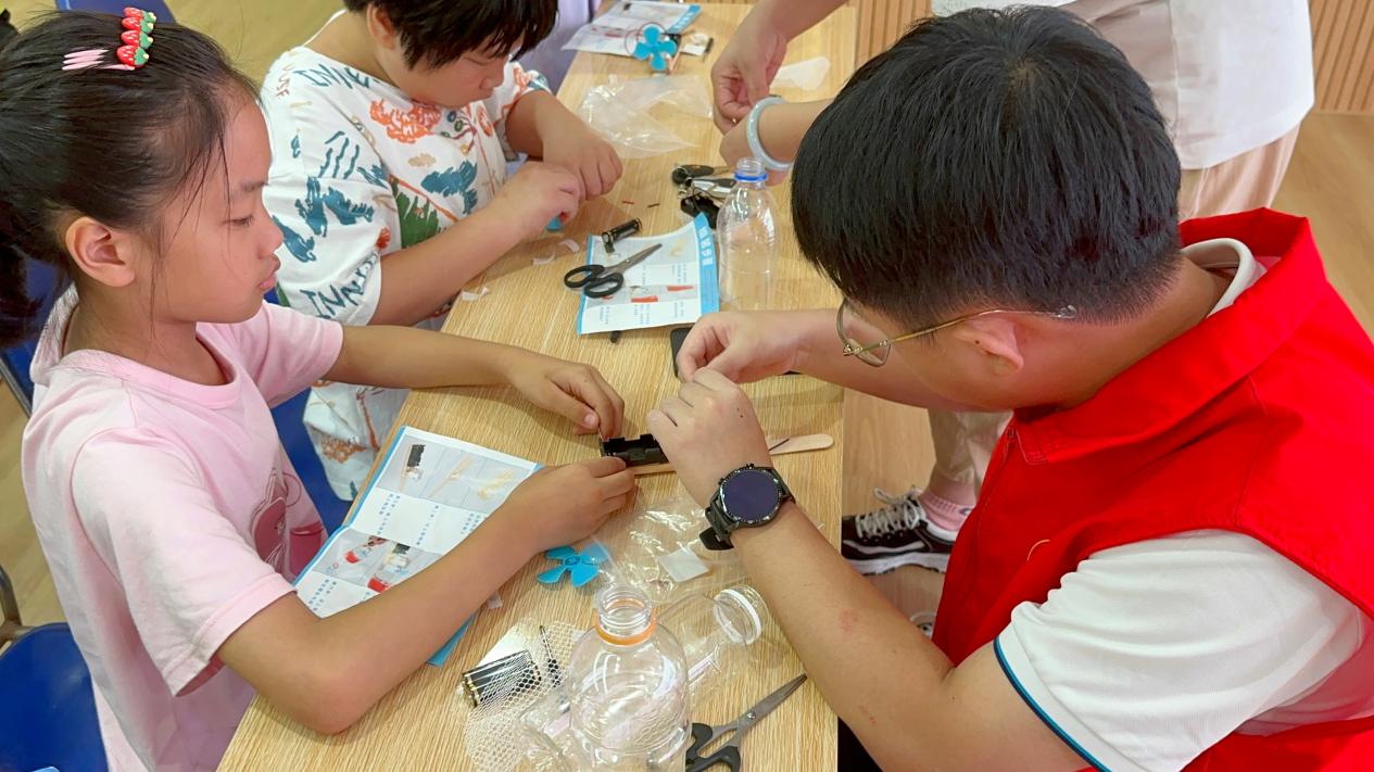 绿色行动护生态,低碳生活美家园。7月15日,yl6776永利集团“赤诚砺行,红色筑梦”暑期实践队与小朋友们共同度过了一个充满创新与环保精神的上午。大家满怀热情与创意,巧妙利用废旧材料,制作出独具特色的环保吸尘器。以实际行动,积极响应环保事业的号召,共同为守护我们美丽的地球家园贡献一份力量。