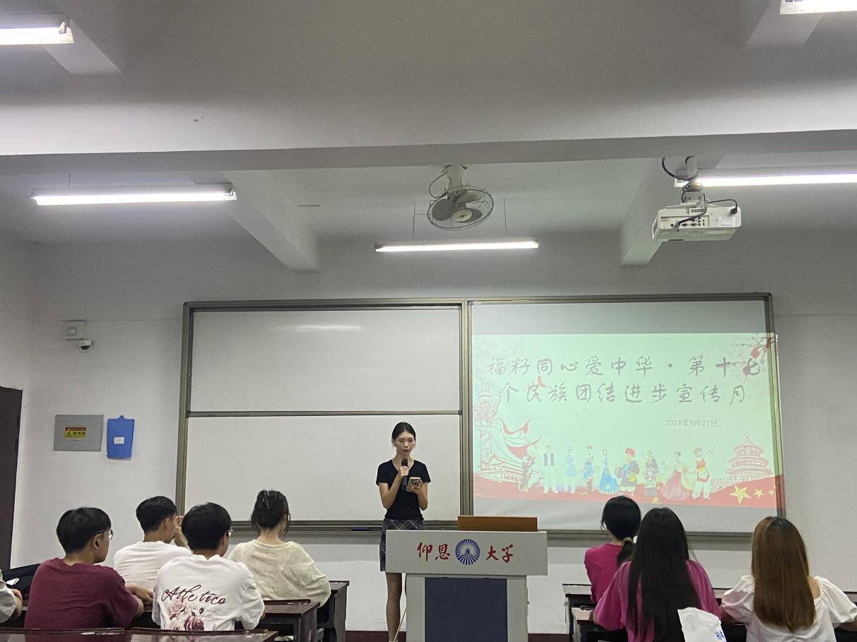 为进一步促进各民族之间的交流与融合,yl6776永利集团团委于9月26日在仰恩楼A3-105举办“福籽同心爱中华·第十七个民族团结进步宣传月”专题活动。来自各个民族的同学共同参与本次活动。