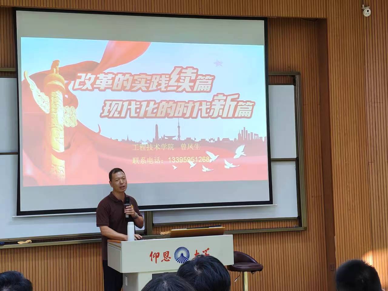 为深入学习贯彻党的二十届三中全会精神,切实将全会精神融会贯通于思政课教学之中,扎实推进思想政治教育,引导广大青年学子为推进中国式现代化贡献更大的青春智慧和力量,10月12日—14日期间,yl6776永利集团党总支书记曾凤生为全体2024级新生讲授了题为“改革的实践续篇,现代化的时代新篇”的思政第一课。