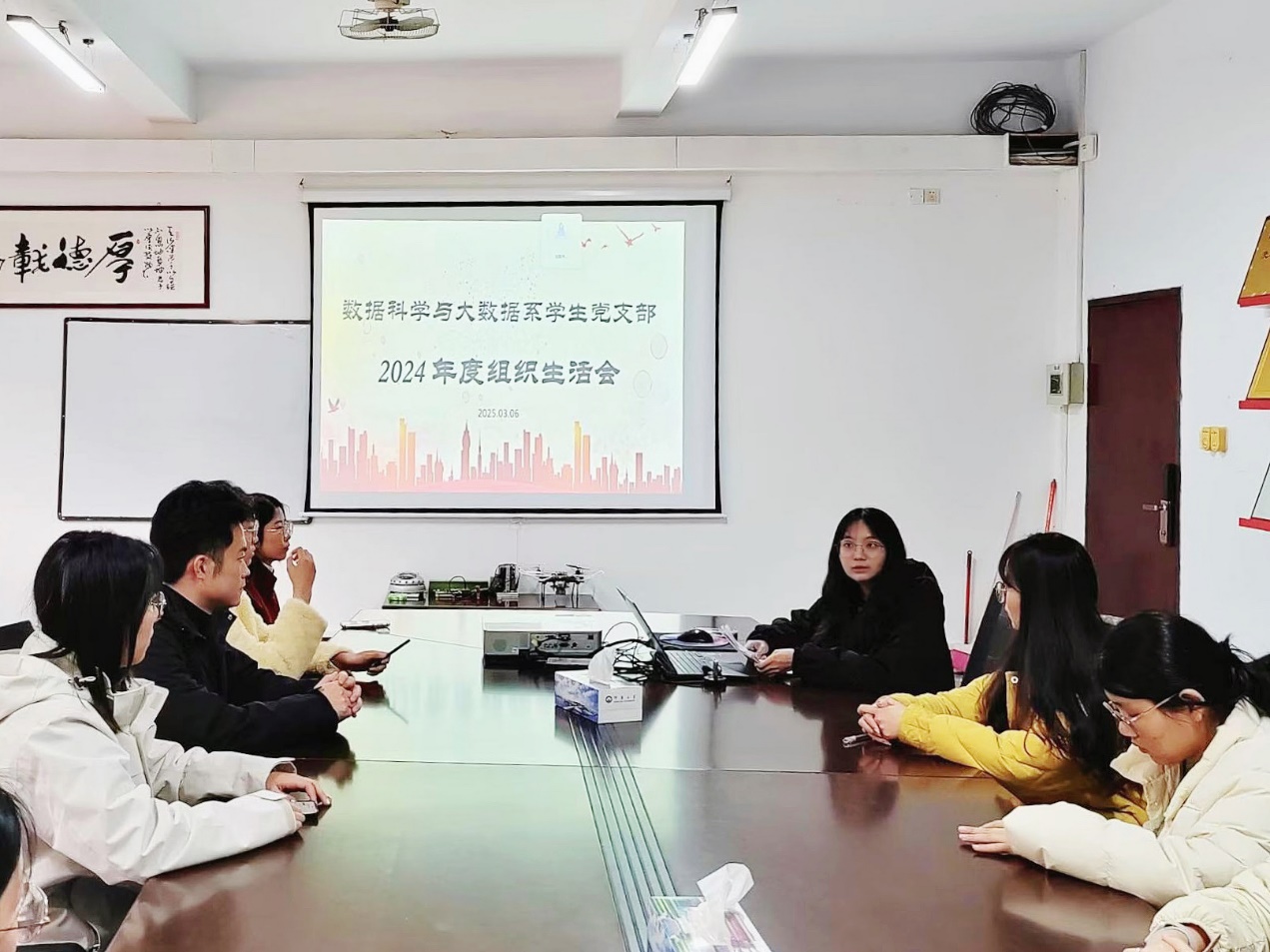 2025年3月6日,数据科学与大数据系学生党支部在泽钏楼3楼会议室召开2024年度组织生活会。本次会议由党支部书记庄秋荣主持,支部全体党员参加会议。