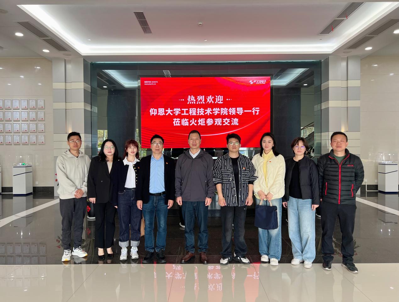 在火炬电子人事经理柯泳鸿的引导下,学院团队先后参观了展厅、党建活动中心,详细了解火炬电子在电子元器件、新材料研发及高端制造领域的创新成果。