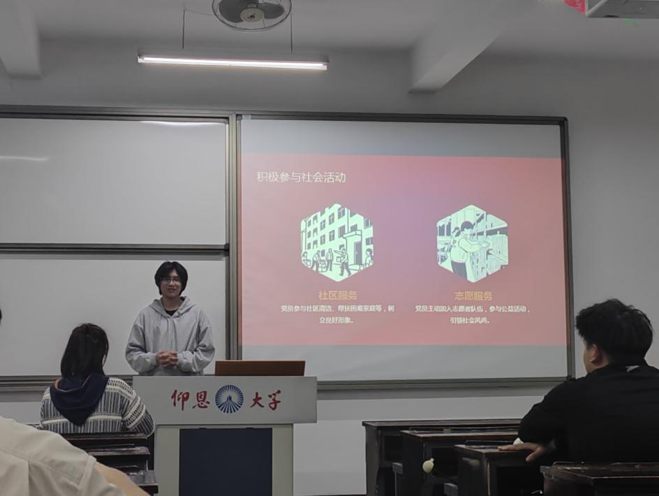 我院人工智能系学生党支部了一场入党积极分子讨论学习会,旨在加强对入党积极分子的培养和教育,提高其政治素养和党性认识。本次入党积极分子讨论会于2025年4月10日在仰恩楼顺利召开,讨论会围绕为什么说“党员是群众中的一面旗帜”“对照党员标准,你认为大学生入党积极分子最容易忽视的短板是什么”“你身边有哪些优秀党员榜样”等主题展开,取得了良好成效。