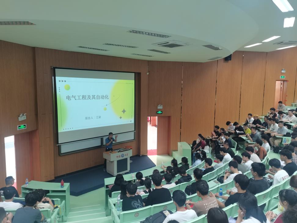 江教授从行业宏观视角切入:“我国电气工业从传统火电体系起步,历经智能电网建设、新能源革命,已实现从‘电力短缺’到‘全球能源互联’的跨越。” 但他也坦言,当前行业仍面临核心芯片自主化不足、新能源并网调控难、老旧电网智能化升级滞后等瓶颈。“要突破这些难题,需要大家以‘合格电气人’为目标,不仅掌握现代电气理论与先进技术,更要树立技术攻关意识 —— 通过四年的专业训练,练就解决实际工程问题的能力,未来才能支撑国家能源战略发展。”