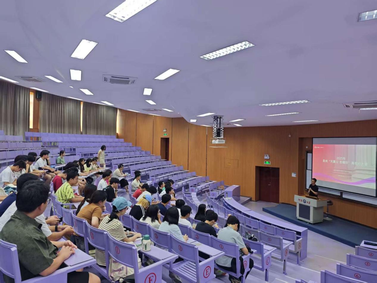 活动特别邀请到中国电信泉州分公司的张立群工程师担任宣讲嘉宾。现场气氛热烈,众多学生慕名而来,齐聚一堂,共同聆听这场关于AI大赛的精彩解读。
