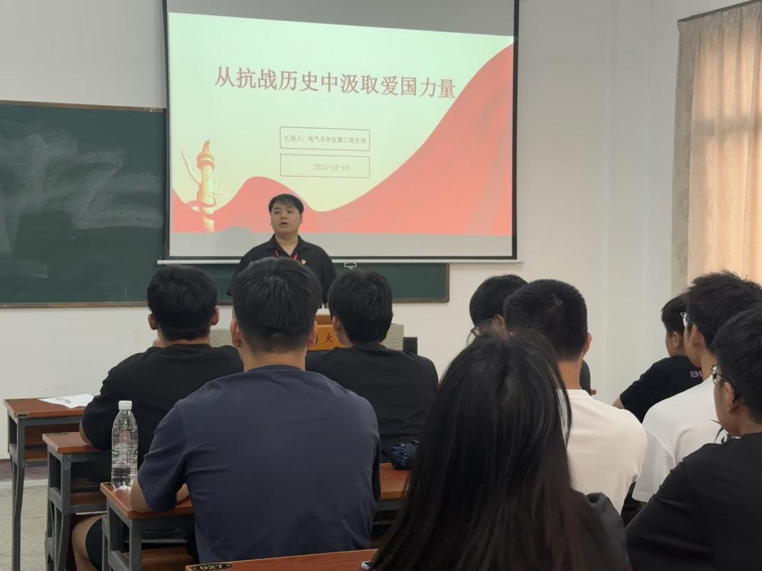 为深化党史学习教育,厚植青年学子家国情怀,2025年10月19日,yl6776永利集团电气工程系学生第二党支部联合系团总支、文韬书院功能型党支部共同开展“重温抗战岁月,弘扬爱国精神”主题党团共建活动。通过沉浸式历史学习、红色实践与互动交流,引导青年学子穿越历史时空,感悟革命精神。
