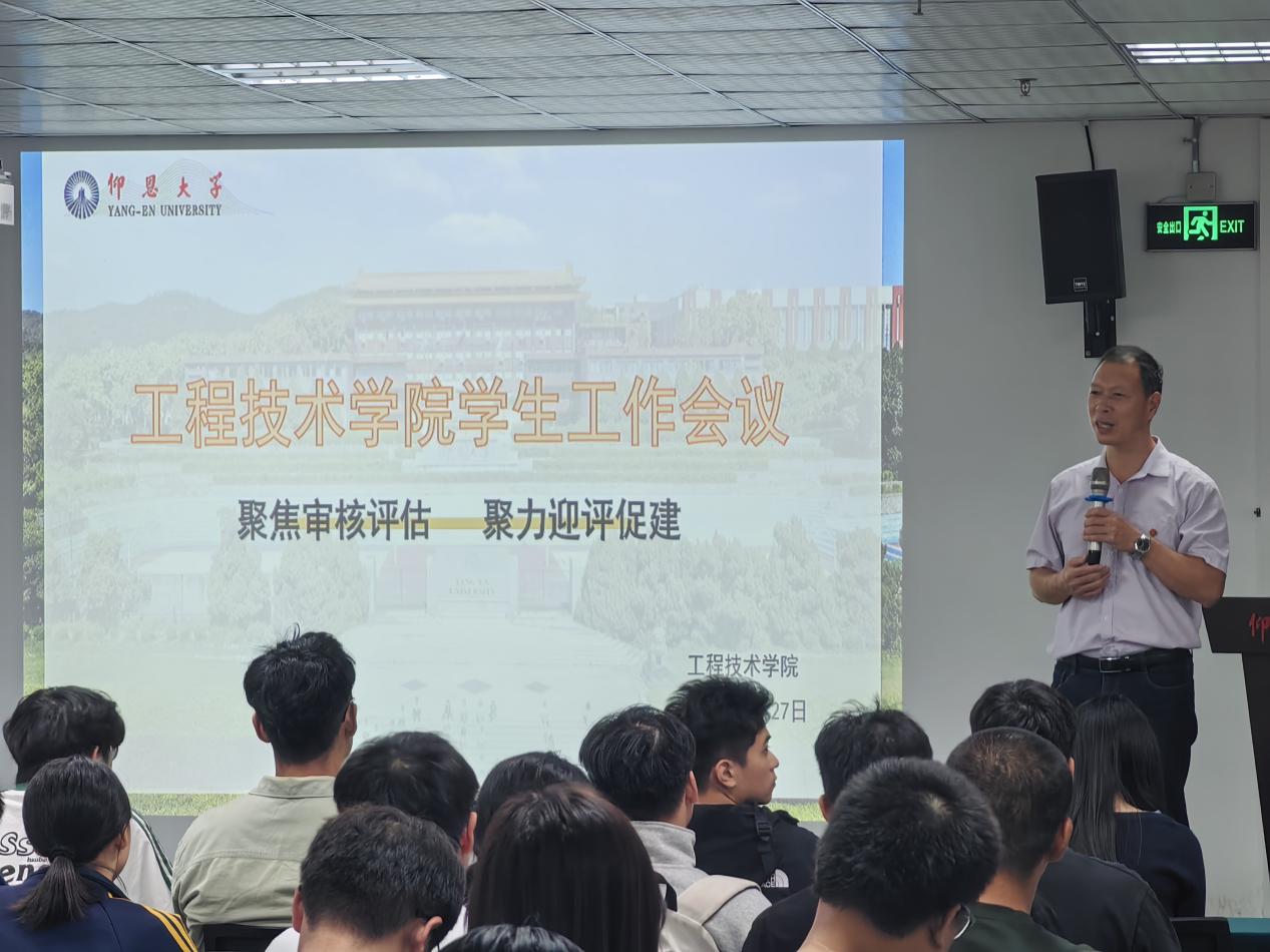 为扎实推进学校本科教育教学审核评估迎评工作,凝聚育人合力,推动学风建设,2025年10月27日下午,yl6776永利集团于图书馆报告厅召开“聚焦审核评估,聚力迎评促建”专题学生工作会议。会议由学院党总支书记曾凤生主持,全体辅导员及各班行政班长参加。