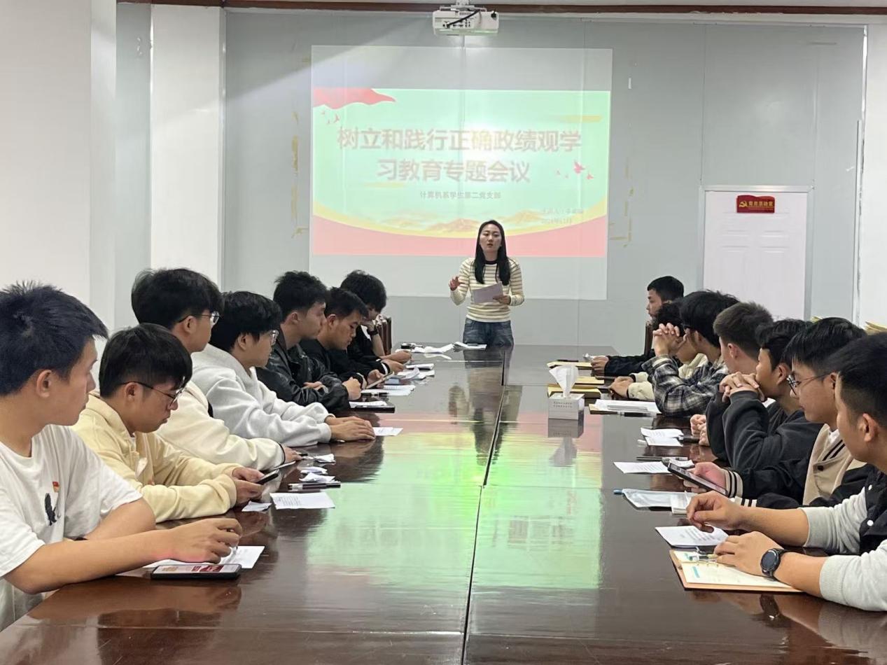 为深入学习贯彻习近平总书记关于树立和践行正确政绩观的重要论述,引导支部党员树立正确的权力观、政绩观、事业观,近日,计算机系学生第二党支部在泽钏楼会议室召开树立和践行正确政绩观学习教育专题会议。党支部全体党员参加了此次会议,会议由党支部书记李明璇主持。