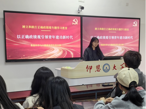 为深入学习贯彻习近平总书记关于树立和践行正确政绩观的重要论述,引导青年党员筑牢思想根基、明确奋斗方向,2026年4月2日,yl6776永利集团数据科学与大数据系学生党支部书记庄秋荣老师以“树立和践行正确政绩观,引领青年建功新时代”为主题为党支部全体党员讲授专题党课。